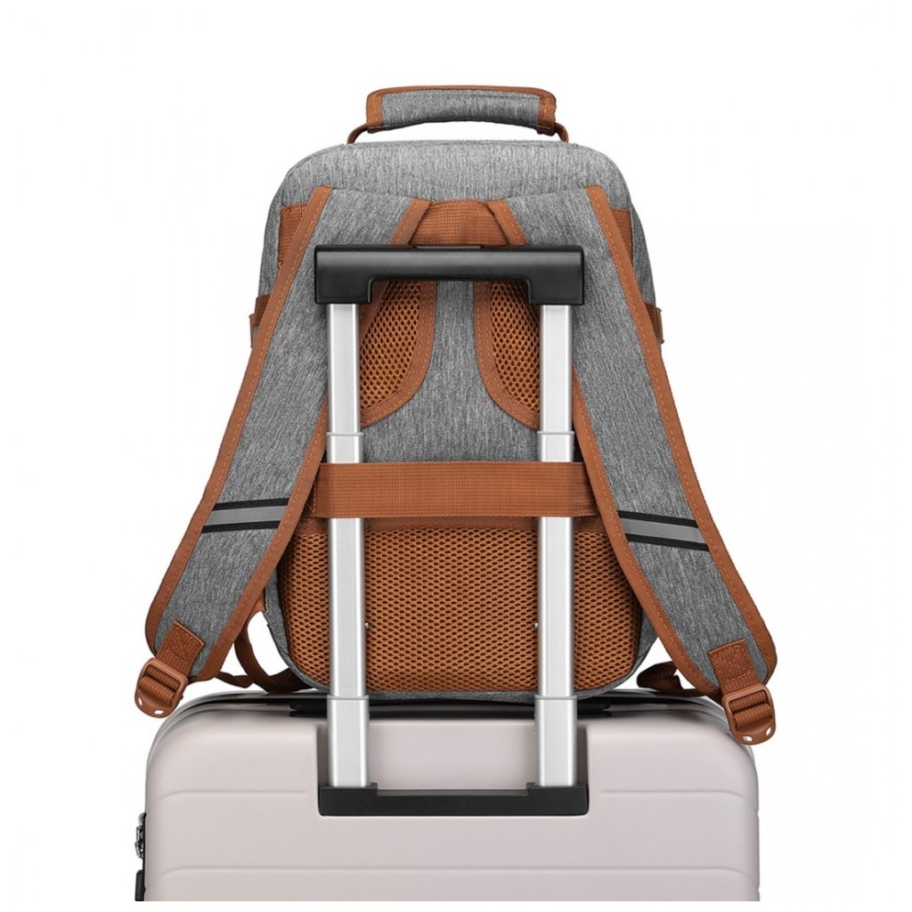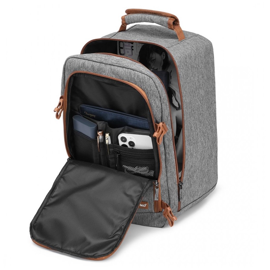 Elegantní batoh, ideální pro byznys cesty nebo do práce. Malý a kompaktní, ale s dostatkem prostoru. V šedohnědé barvě, vyroben z odolného polyesteru s výztuhou v popruzích. Otevírá se na zip a má v sobě přehledné přihrádky na drobnosti, PC/tablet a vše potřebné. S výbornými vyztuženými popruhy a 20L objemem, ideální do letadla.