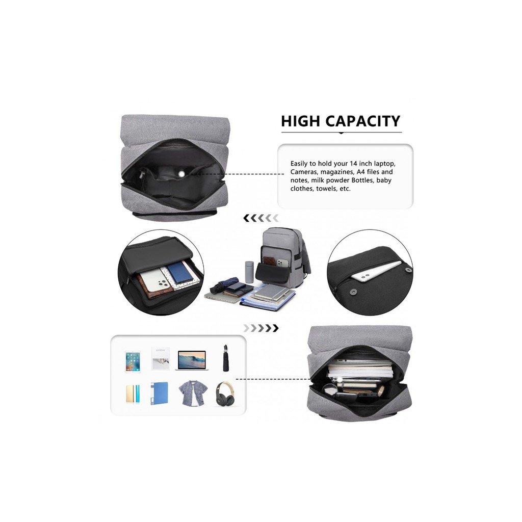 Batoh - KONO voděodolný s usb nabíjecím portem šedý