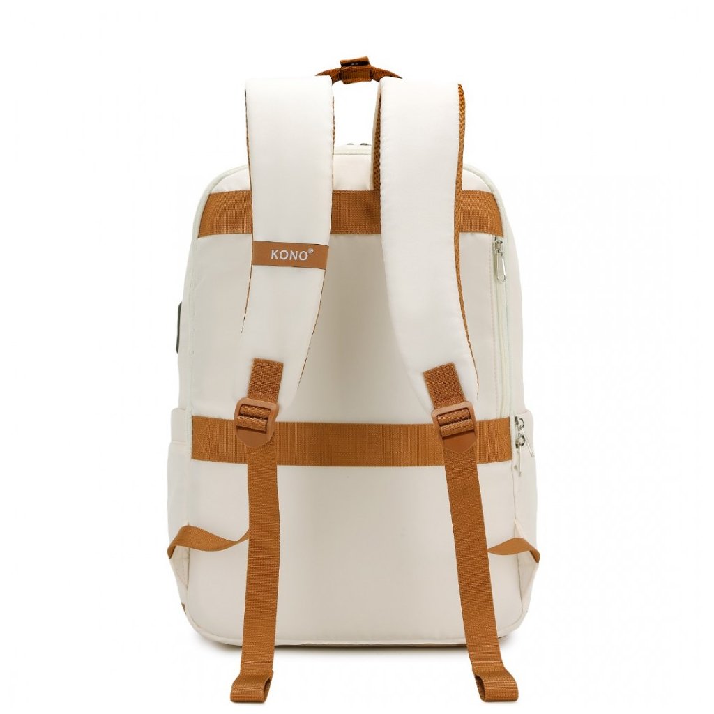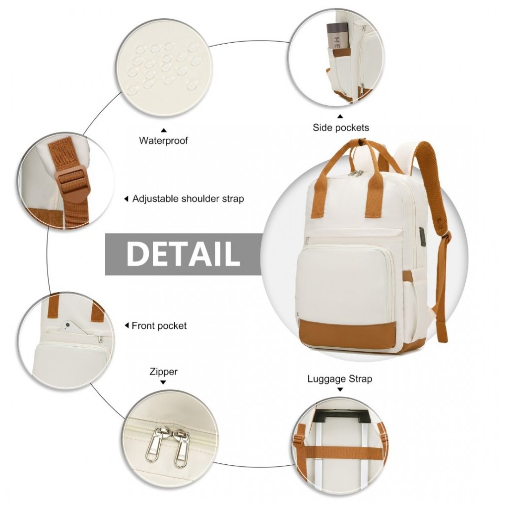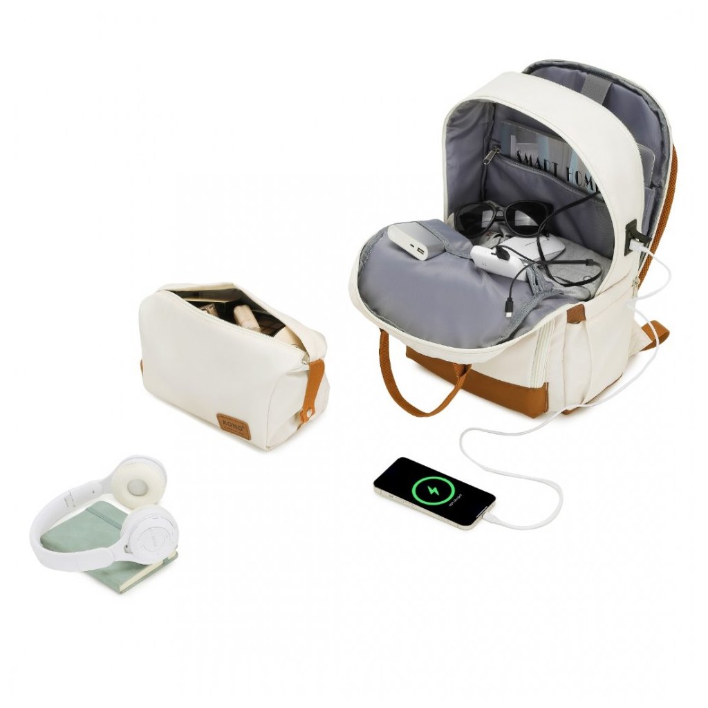 Batoh - na počítač s USB-C nabíjecím portem a taštičkou zdarma, béžový