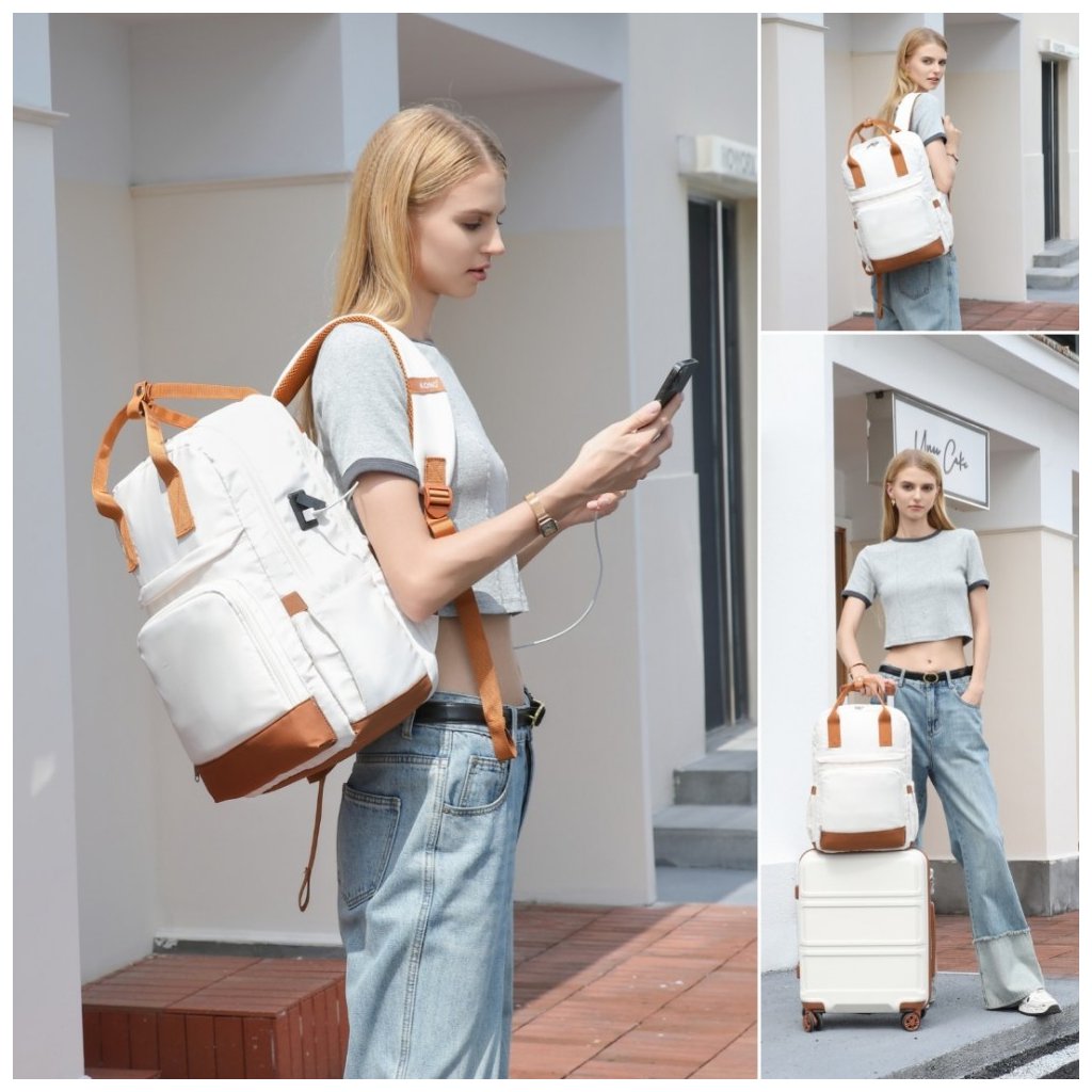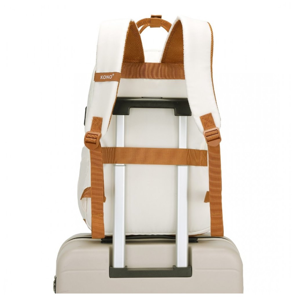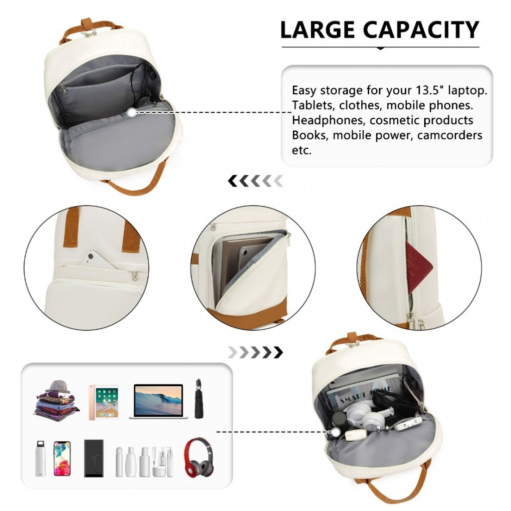 Batoh - na počítač s USB-C nabíjecím portem a taštičkou zdarma, béžový