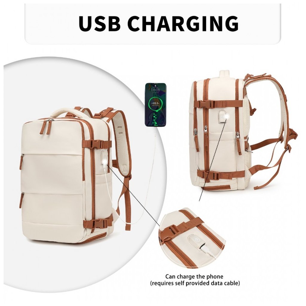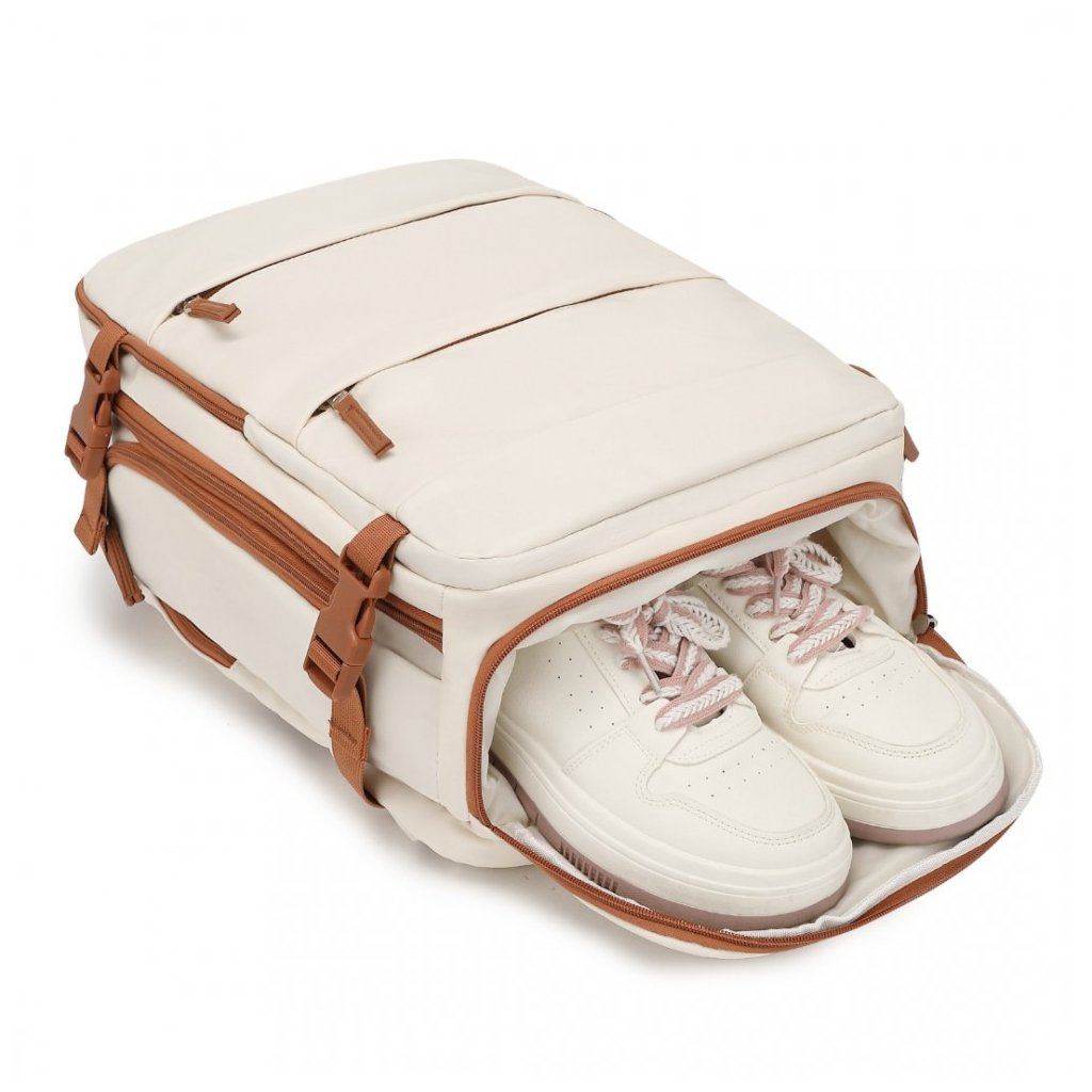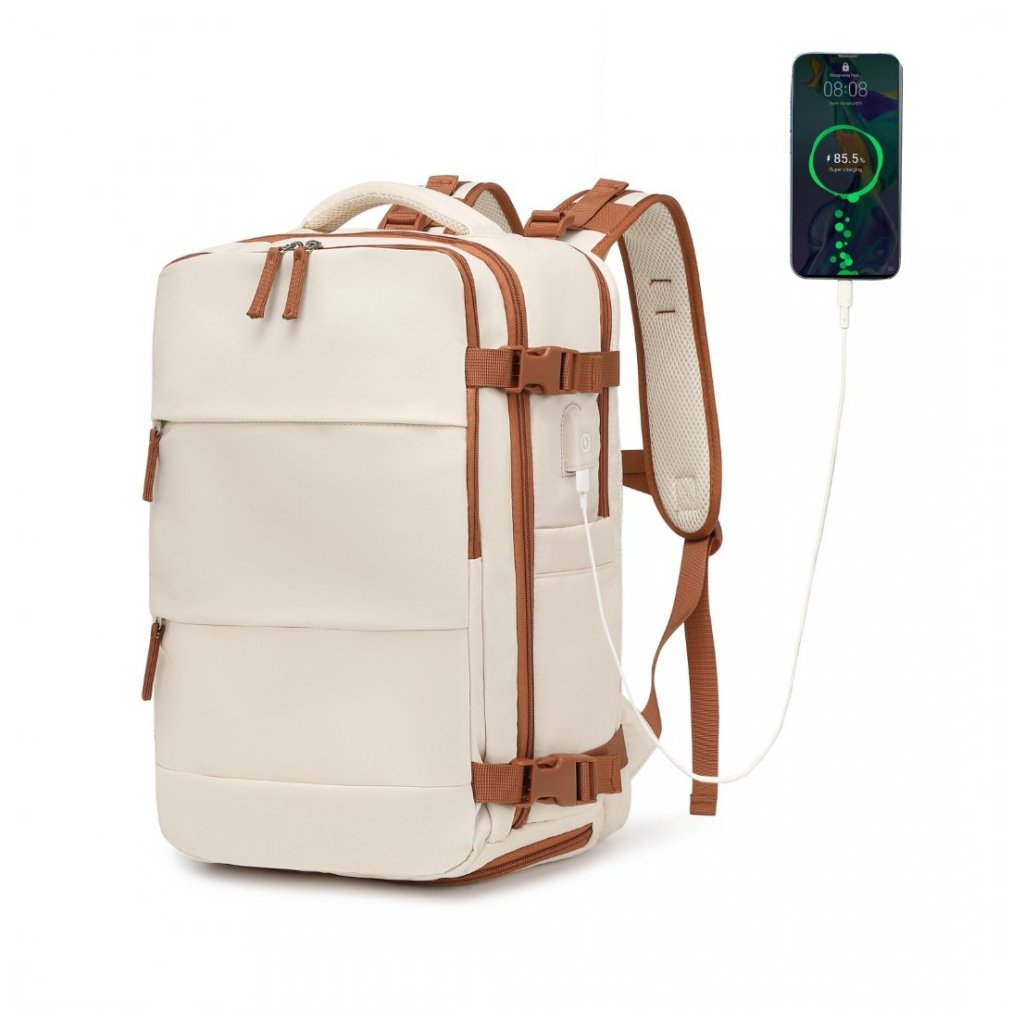 Batoh - prodyšný s USB portem a přihrádkou na boty, 25L, béžovohnědý
