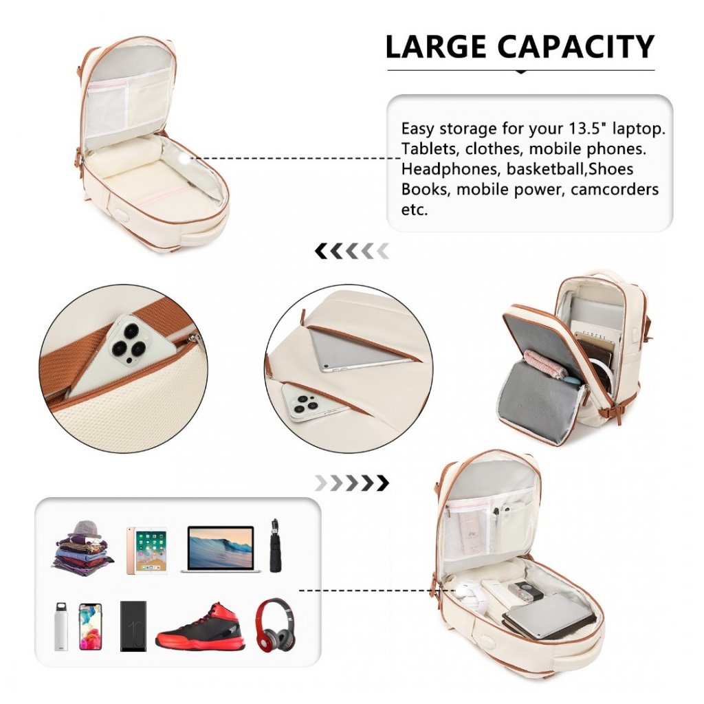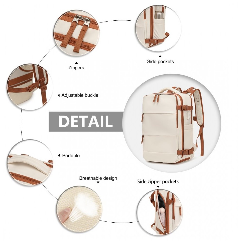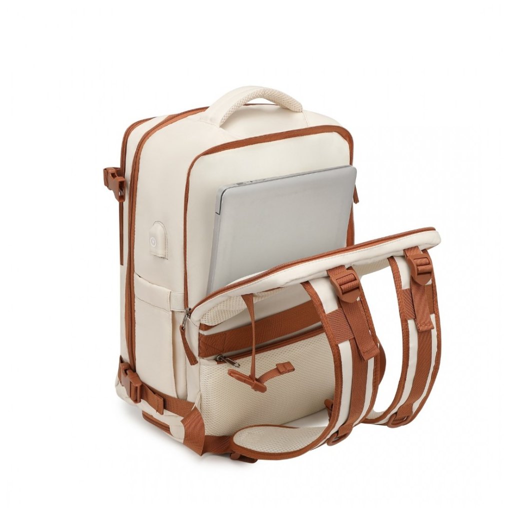 Batoh - prodyšný s USB portem a přihrádkou na boty, 25L, béžovohnědý