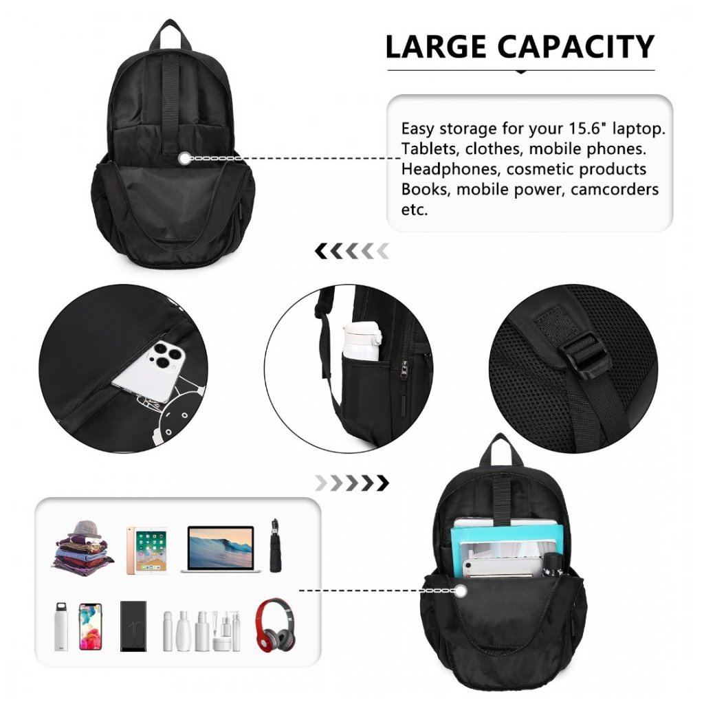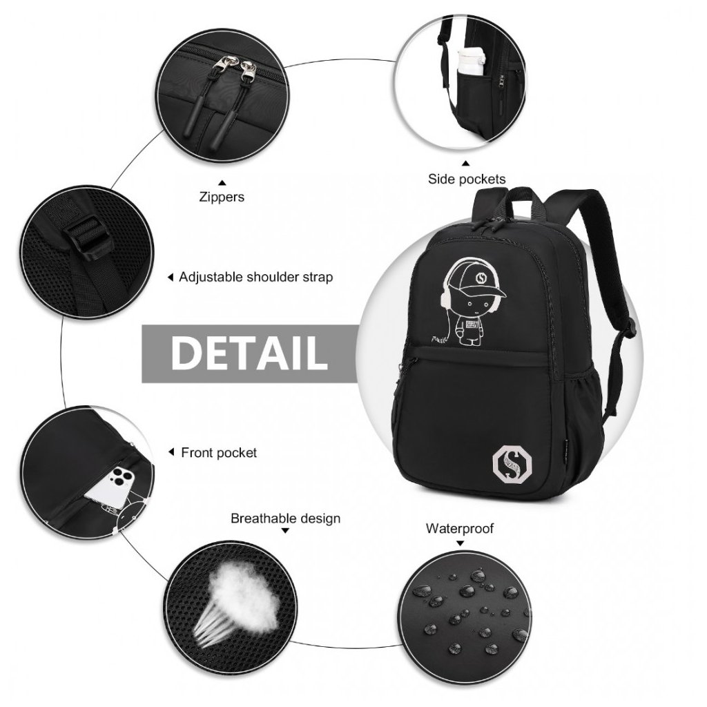 Tento stylový černý set, který obsahuje batoh, crossbody tašku a penál, je ideální pro aktivní lidi, kteří potřebují funkčnost a originální design. Svítící prvek, který ožívá ve tmě, dodává setu jedinečný charakter a zároveň zlepšuje vaši viditelnost ve snížených světelných podmínkách.
