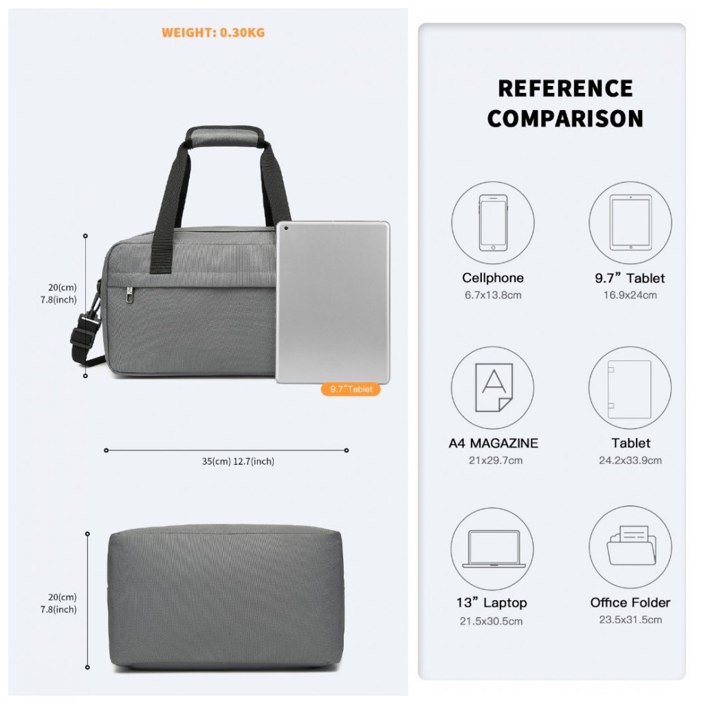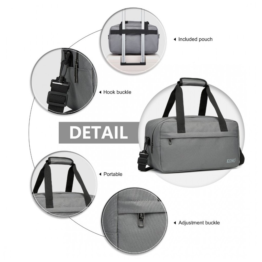 Víkendový pobyt nebo otočna do hlavního města evropských metropolí se neobejde bez rychlého sbalení do praktické cestovní tašky od značky KONO. Taška je vhodná i jako příruční zavazadlo do letadla. Nebo jsou vhodná jako doplňková zavazadla k většímu kufru. tkaniny, vnitřek je z polyesterové podšívky a popruhy jsou nylonové. Taška je laděna v unisex vzhledu. Její vnitřek je prostorný vhodný pro potřebné věci na pár dní. Pohodlně se nosí popruhem na rameni. Uzavírá se zipem.