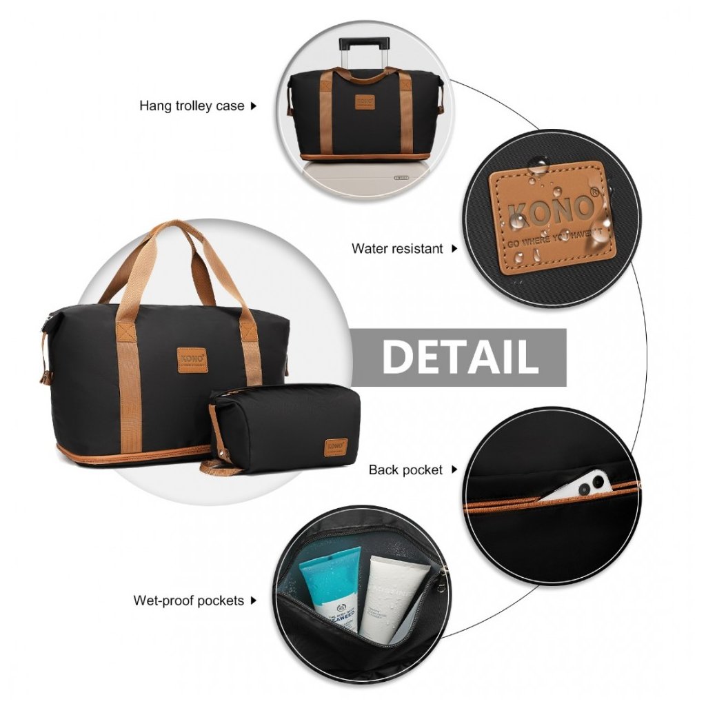 Cestovní taška - rozšiřitelná, voděodolná s kosmetickou taštičkou, černohnědá