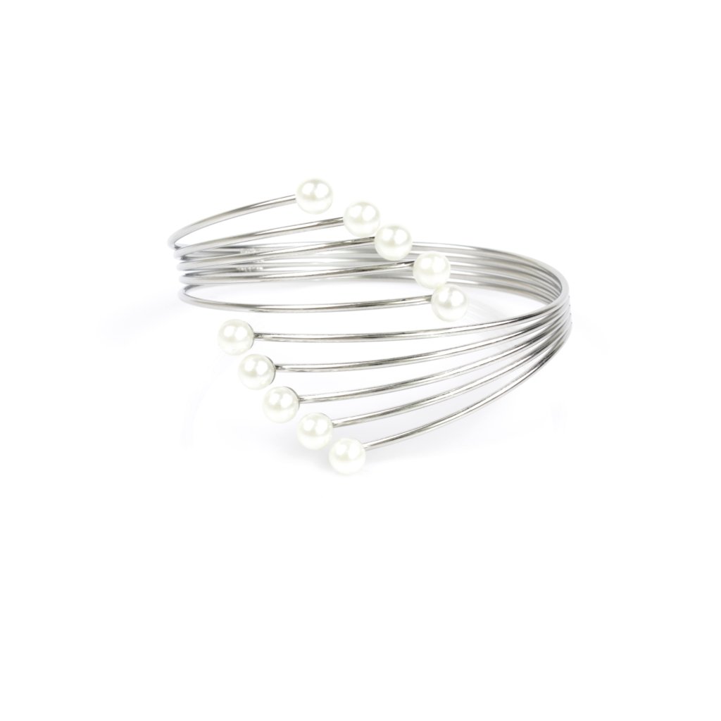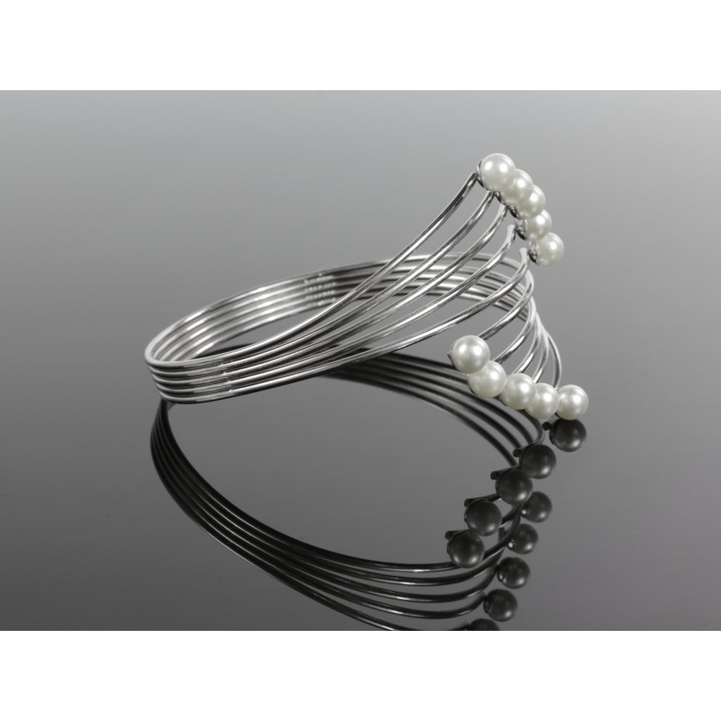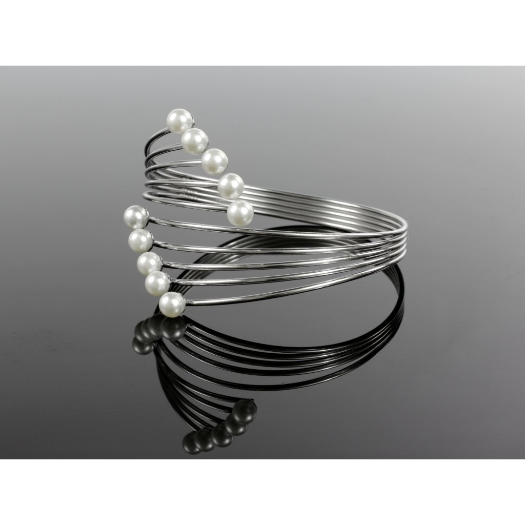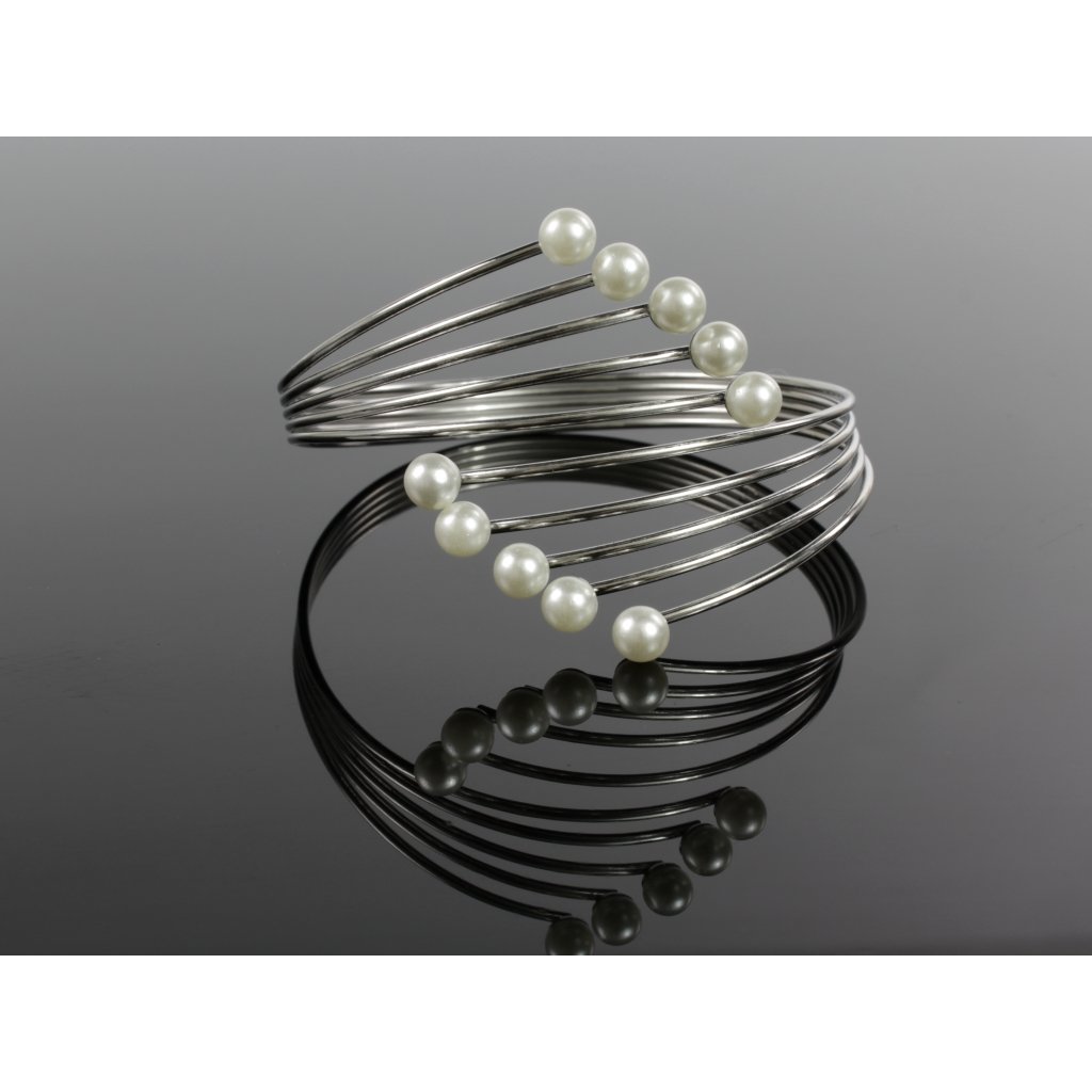 Krásný dámský náramek s umělými bílými perlami. Náramek je vhodný pro běžné každodenní nošení do práce či zábavu ale jelikož jsou na náramku i umělé perly lze použít i ke slavnostnějšímu autfitu. Celý náramek působí něžně a romanticky.