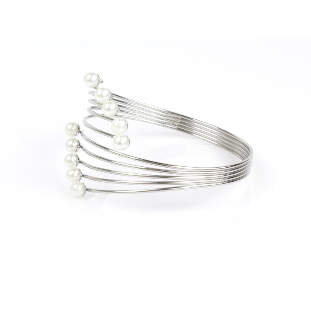 Dámský náramek s chirurgické oceli s umělými perlami bílé barvy