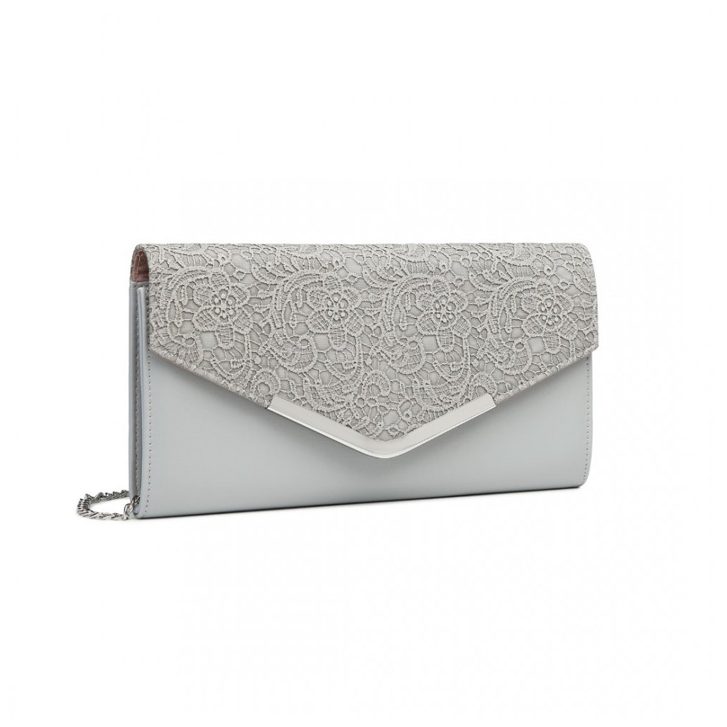 Kabelka - listová, clutch s květinovým vzorem, šedá