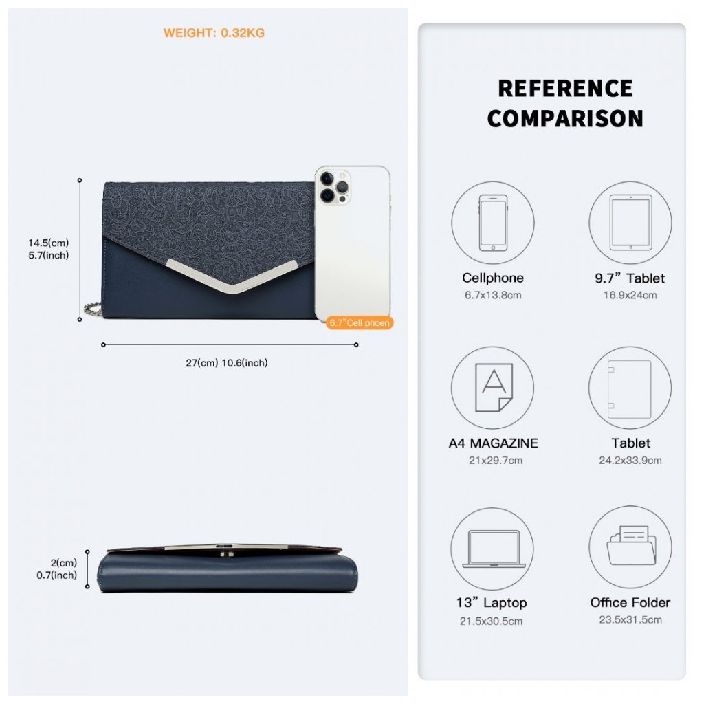Elegantní a zároveň stylová, dopisní clutch kabelka s květinovým vzorováním na přední straně je dokonalým doplňkem pro speciální příležitosti. S nadstavitelnou délkou řetízku vám umožňuje přizpůsobit jej svým preferencím a stylu.
