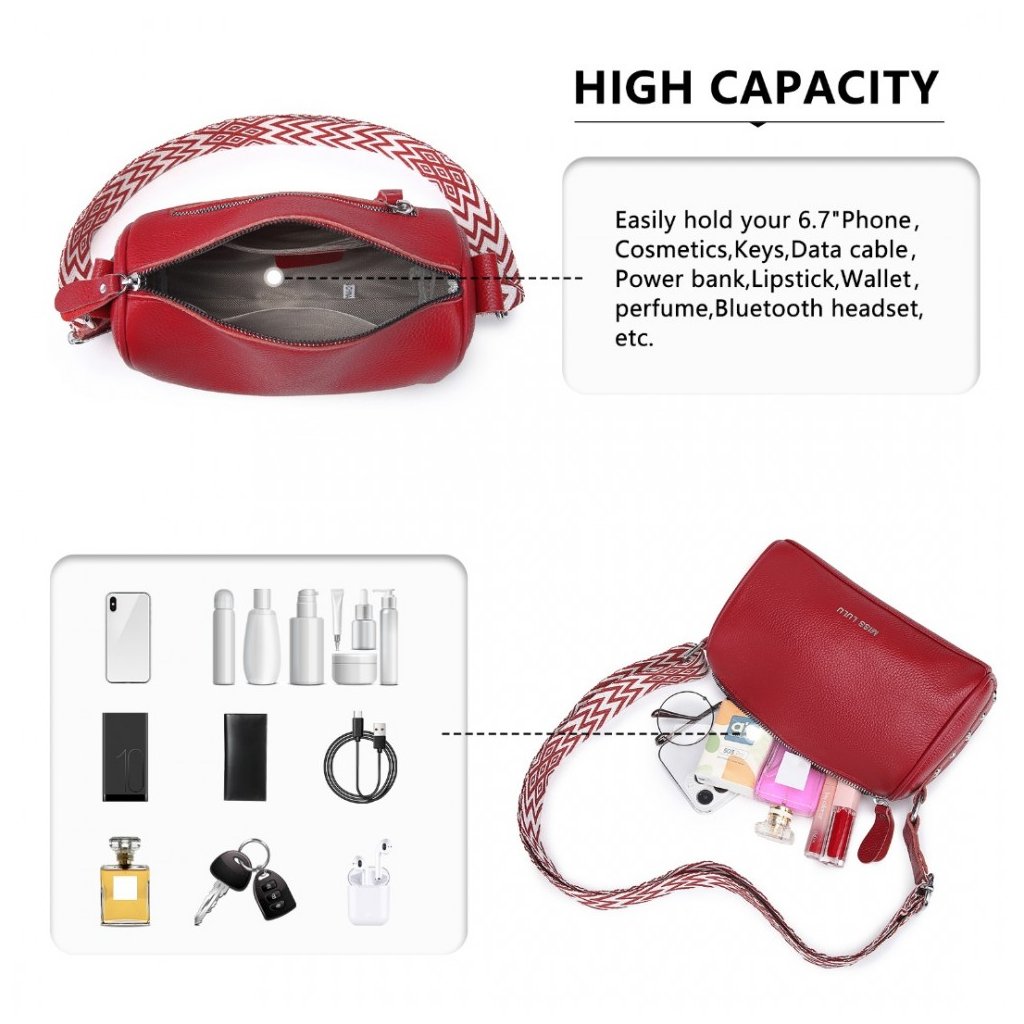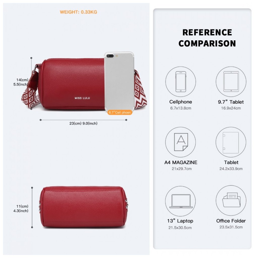 Obohať svoj štýl touto štýlovou crossbody kabelkou od značky Miss Lulu, vyrobenou z pravej kože. Táto elegantná kabelka je ideálna voľba pre tých, ktorí preferujú jednoduchší dizajn s výrazným vzorovaným hrubým nastaviteľným popruhom.