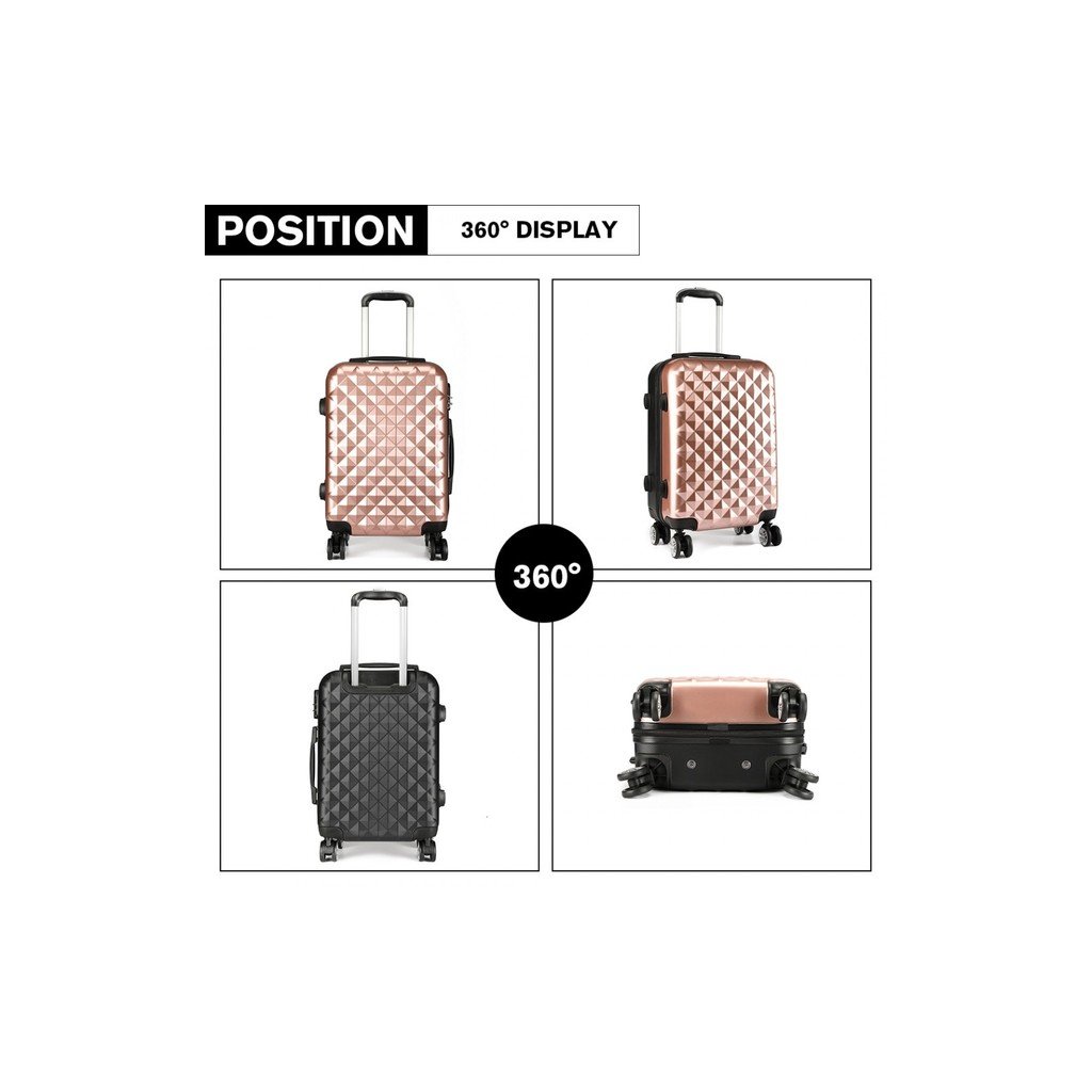 Kufr je vyroben z pevného a odolného PC a ABS plastového materiálu se stříbrnými doplňky v metalickém lesklém designu. S zavazadly se zachází prakticky a snadno díky teleskopické hliníkové rukojeti a 360 - stupňovým kolečkům. O bezpečnost vašeho zavazadla se opravdu nemusíte bát, protože kufr disponuje speciálním zámkem na kód. Vyztužené vnitřek je dokonale přizpůsobeno pro vaši zavazadla, kterou zajistíte gumovými pásky. Kosmetické drobnosti či jiné technologické věcičky lze vložit do zipového složce.