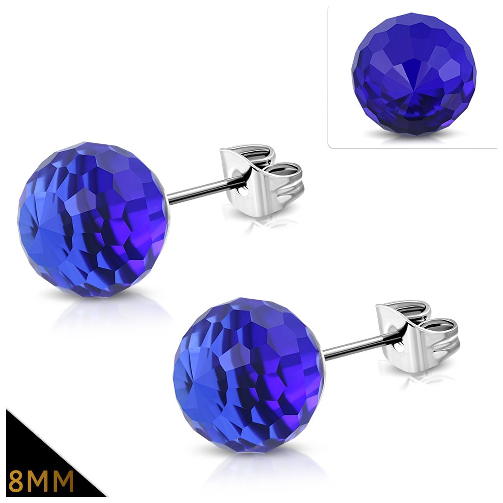 Náušnice z chirurgické oceli v modré barvě s fasetovým výbrusem - 8 mm