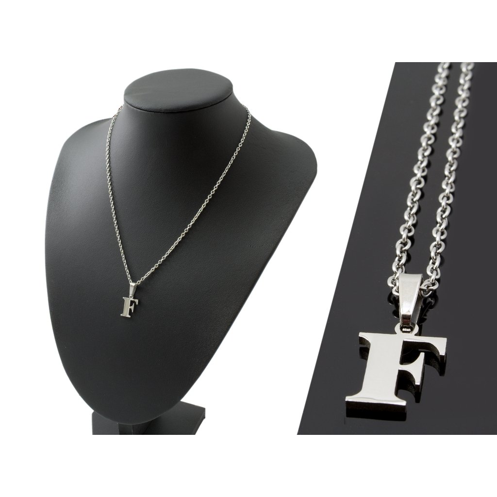 Ocelový řetízek přívěskem písmeno F - 1,3 cm + pri tomto produkte si môžete zvoliť dĺžku retiazky