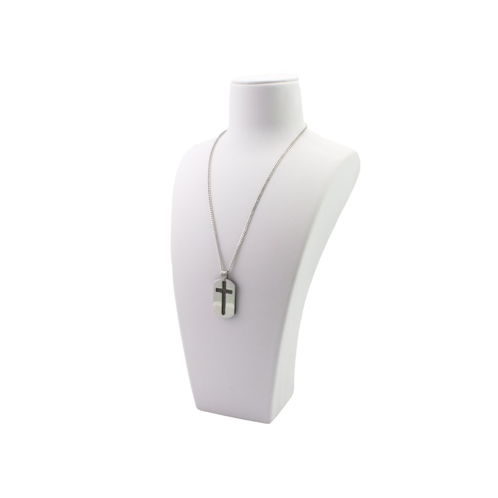 Vlastnosti a popis řetízku s přívěskem plotýnka z oceli s křížem a modlitbou ve stříbrno-černém provedení
