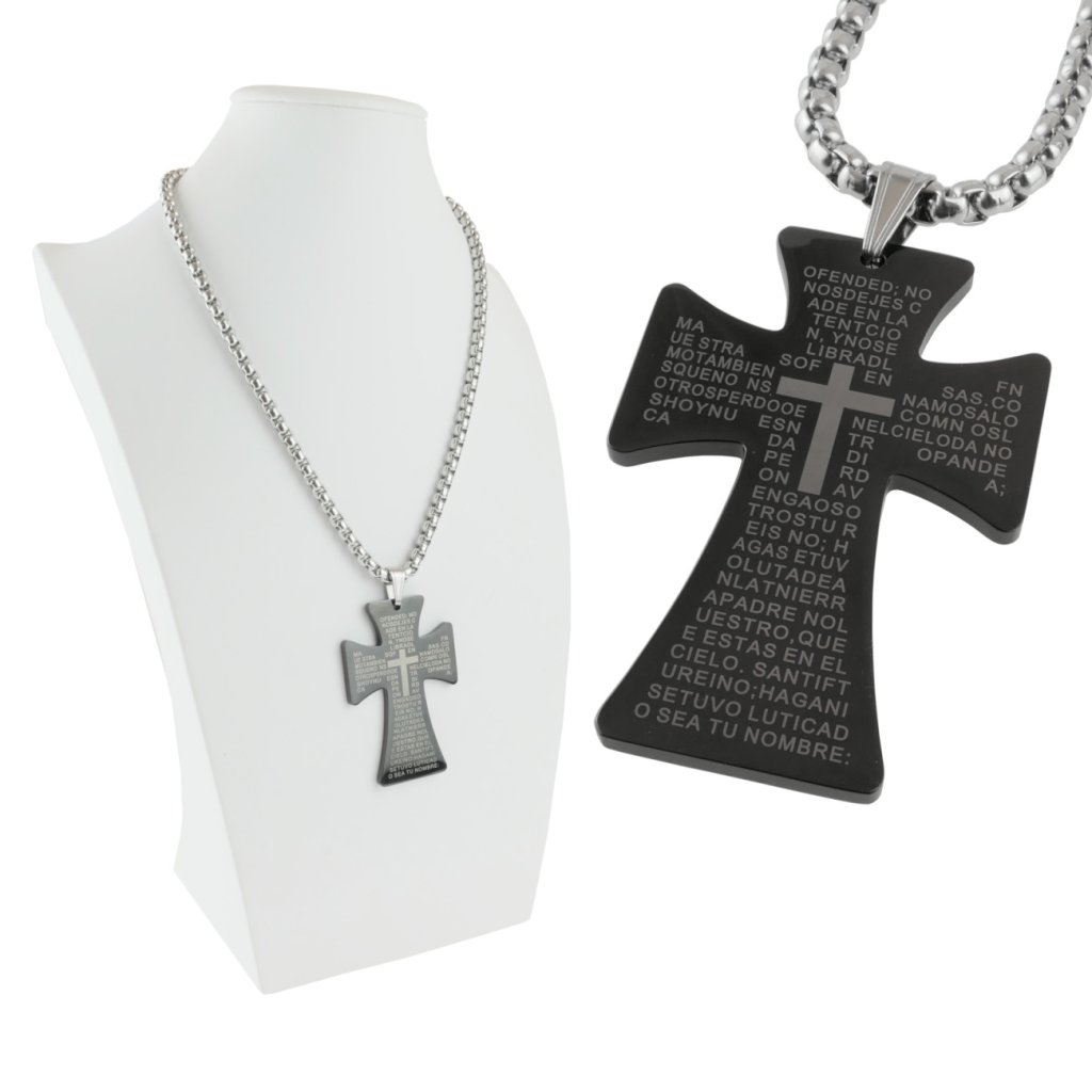 Ocelový řetízek s velkým křížem s modlitbou Juan + darčeková krabička zadarmo