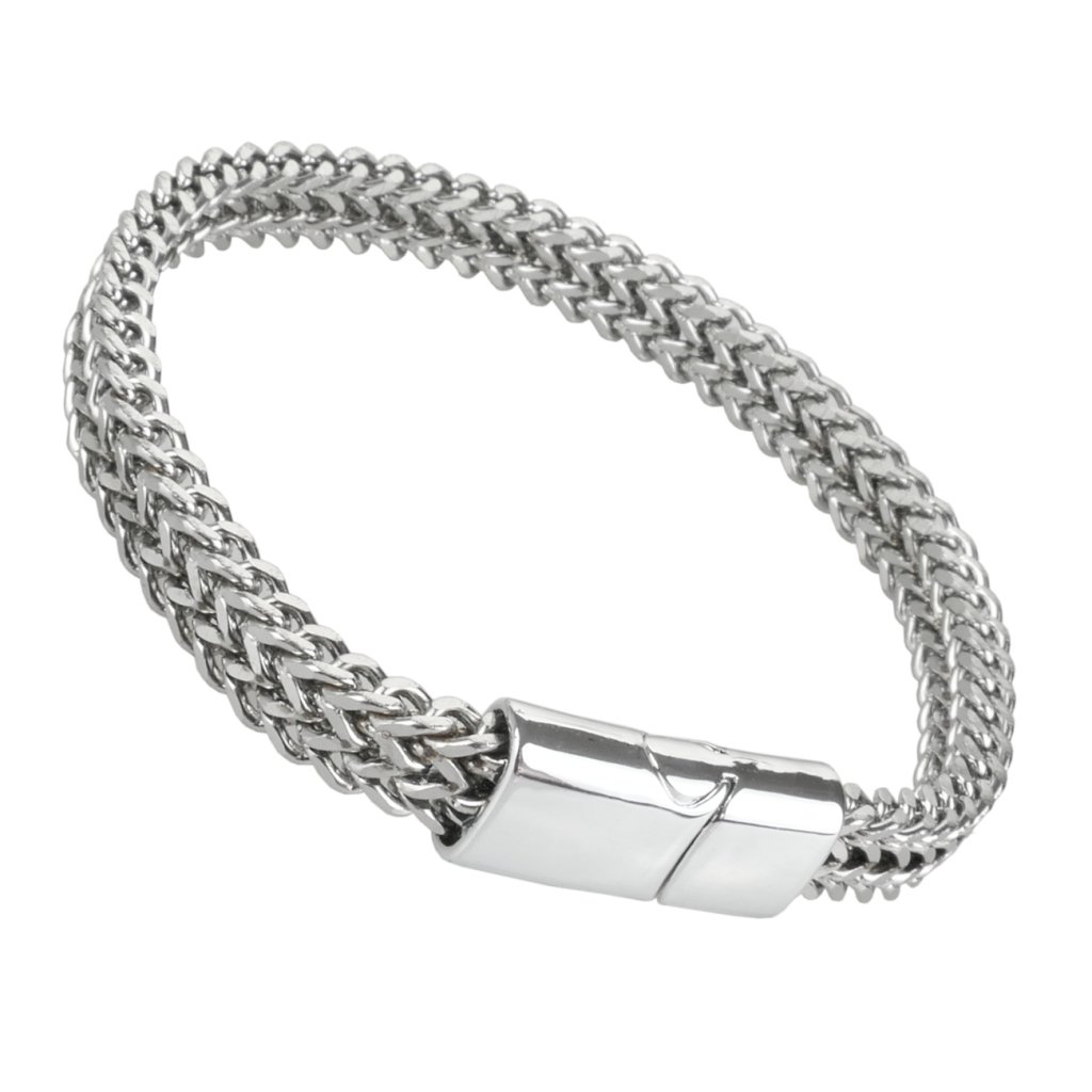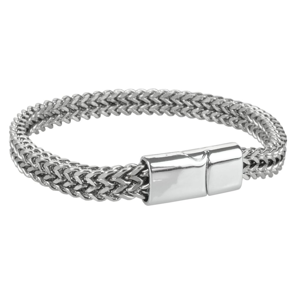 Krásný a elegantní pánský náramek ve stříbrném provedení z kvalitní chirurgické oceli. Tento styl náramku je velmi populární a vyhledávání. Je vhodný pro běžné každodenní nošení ale také ke slavnostnějšímu outfitu. Chirurgická ocel je materiál, který nekoroduje a nevyžaduje žádnou speciální péči. Náramek má krásné zasouvací zapínání z leštěné chirurgické oceli.