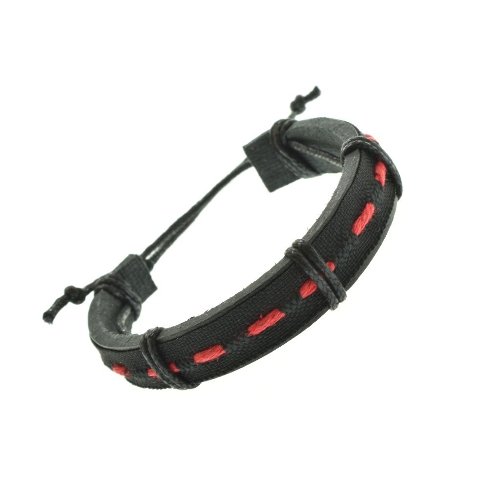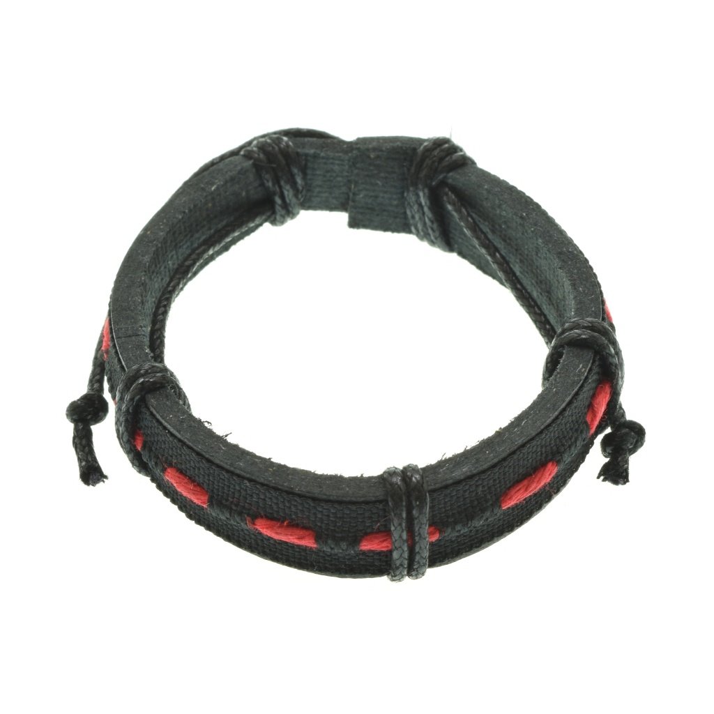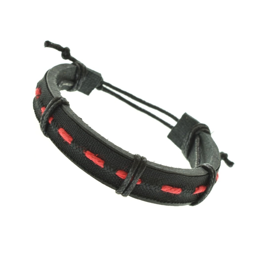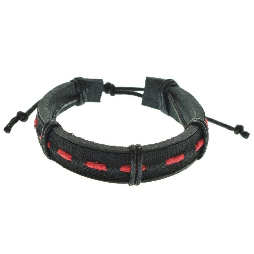 Pánský náramek z eko kůže a textilie. Náramky z kůže jsou IN , ale z eko kůže ještě více! Náramek je zdoben textilií a textilní šňůrou v pěkné červené barvě. Působí velmi moderně a stylově , proto je vhodným doplňkem pro pány v jakémkoli věku. Ekokůže je velmi příjemný materiál a díky textilní šňůře si umíte nastavit potřebnou velikost náramku . Skvělý náramek , který oživí jakýkoli outfit.