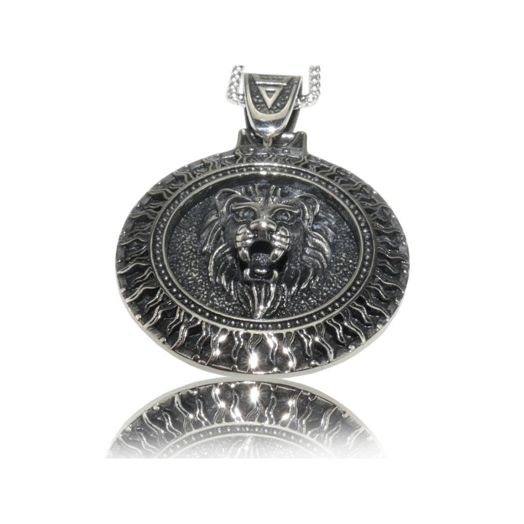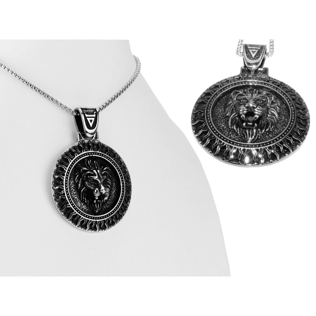 Pánský řetízek s kulatým přívěskem lev z oceli - Lion + darčeková krabička zadarmo