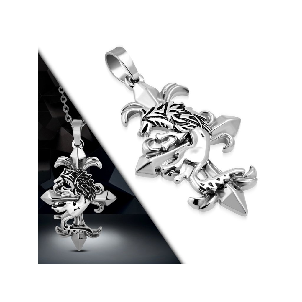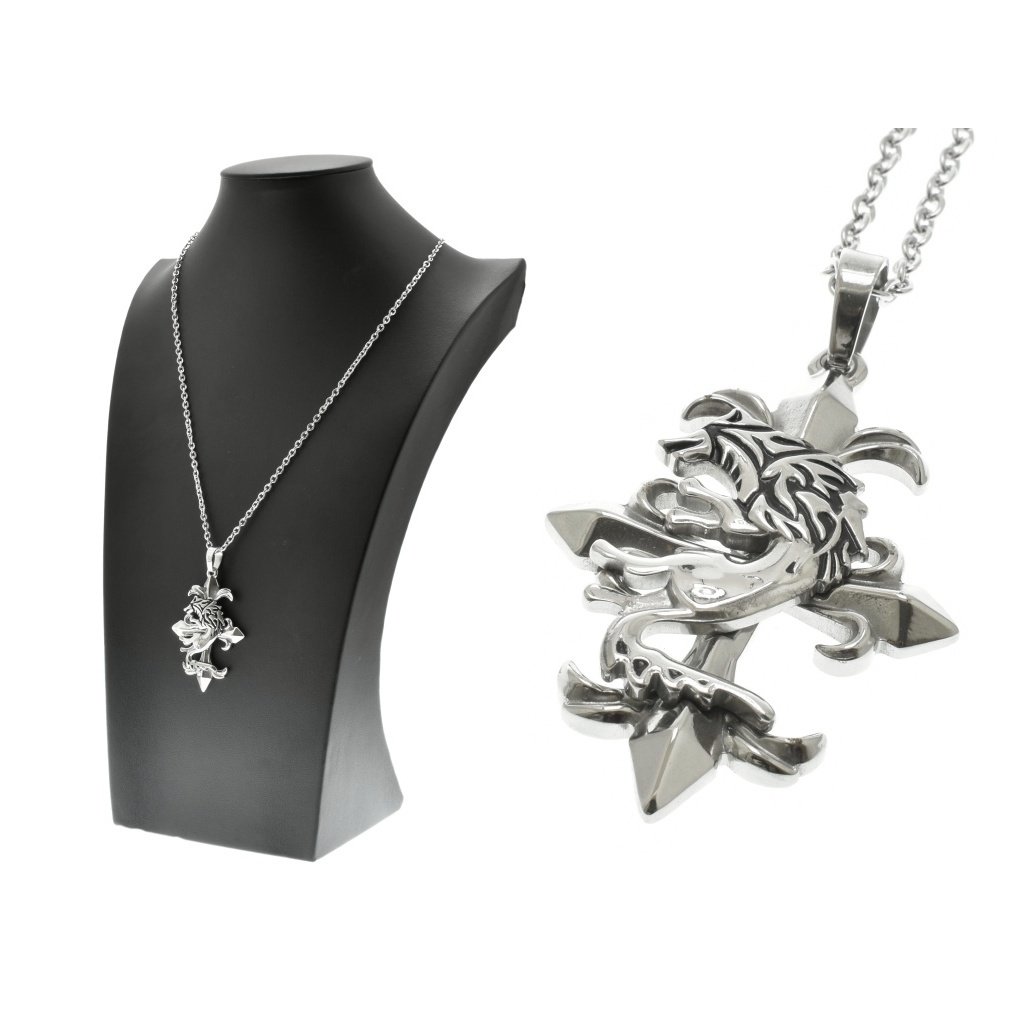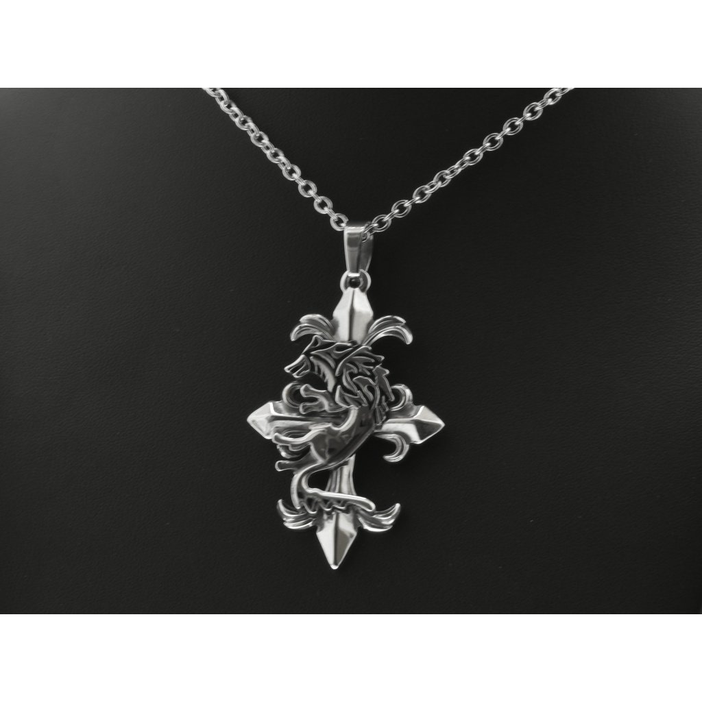 Pánský řetízek s přívěskem z chirurgické oceli kříž zdobený lvem
