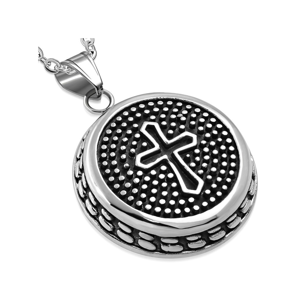 Pánský řetízek s přívěskem medailon s křížem z oceli