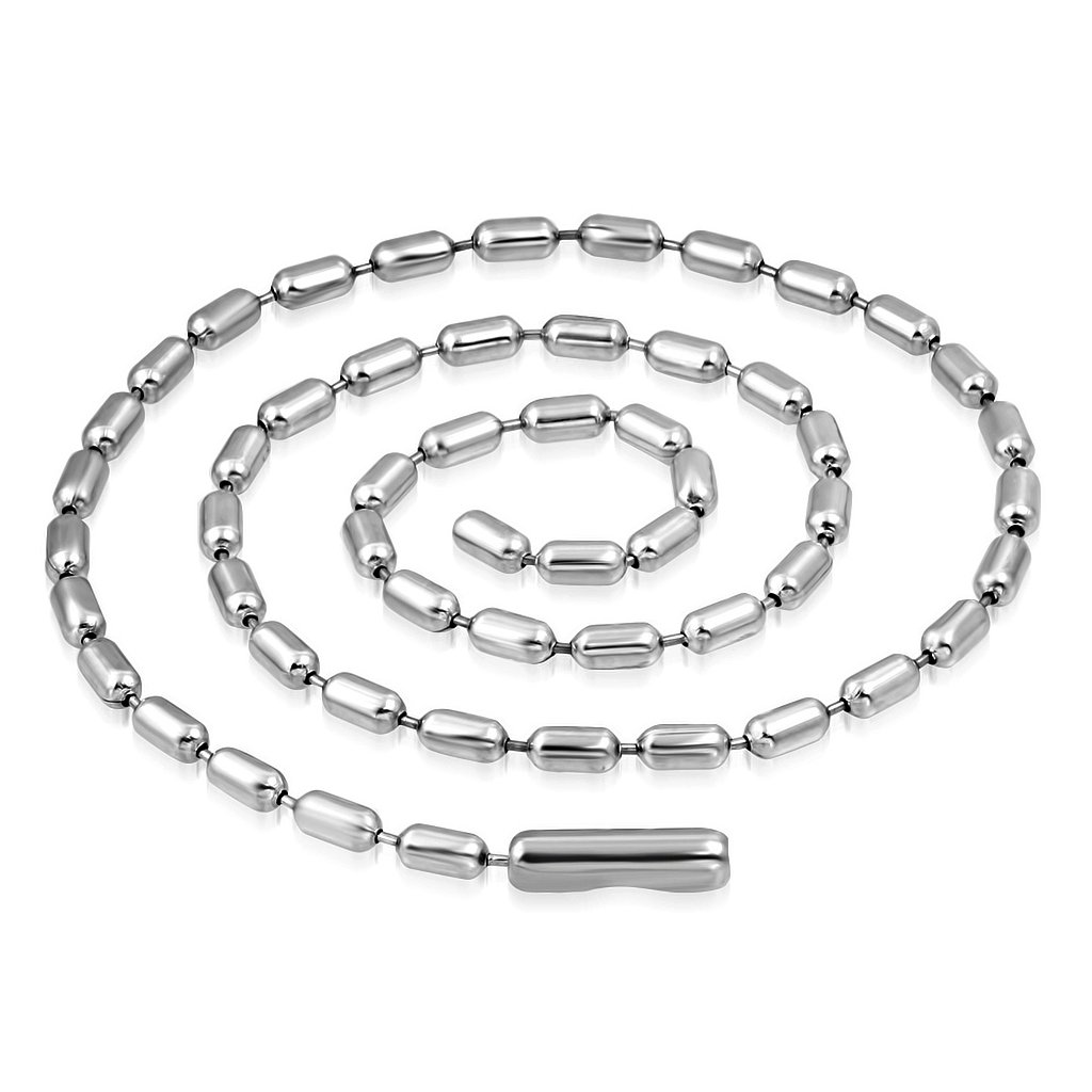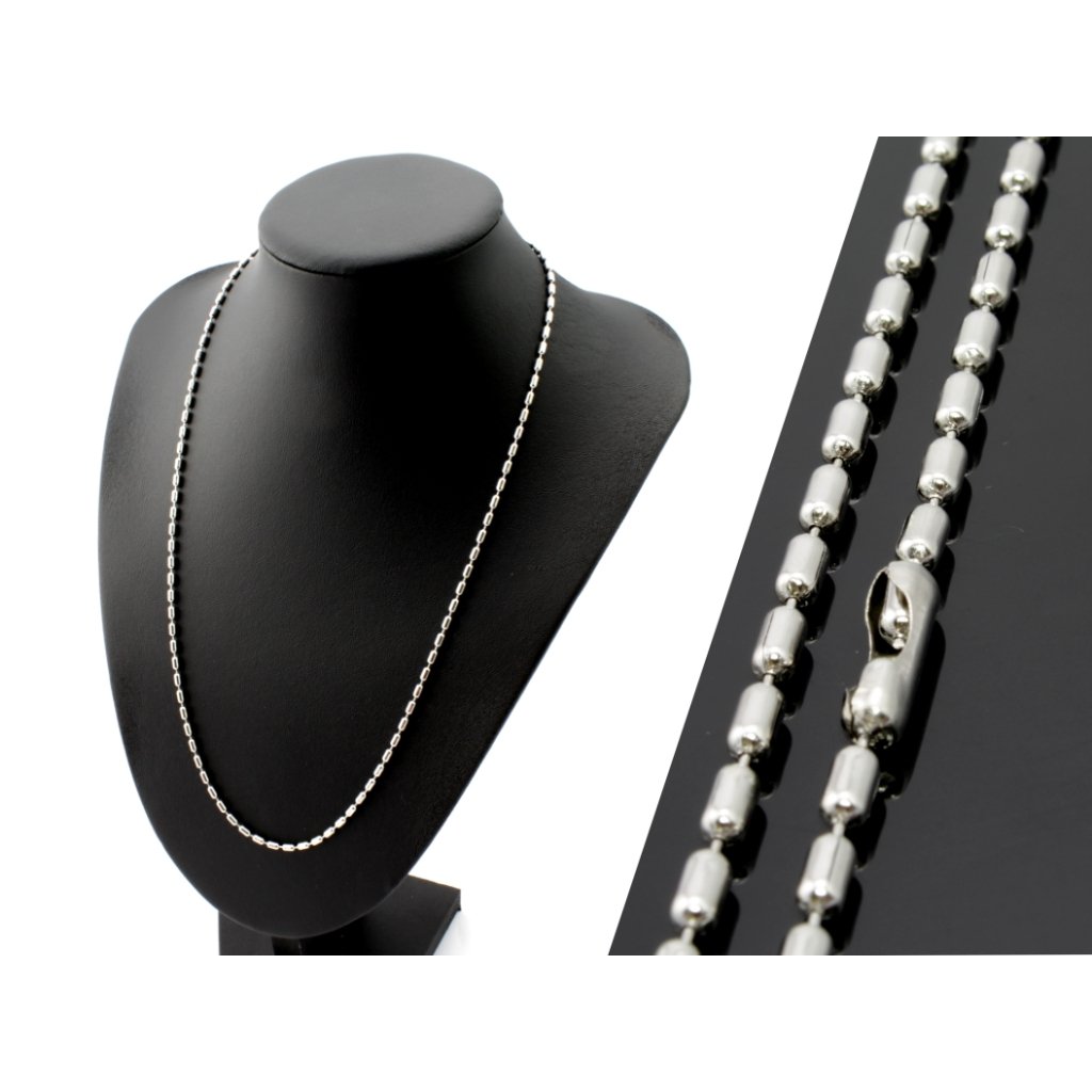 Řetízek z chirurgické oceli ve stylu military pánský z válečků tlustých 2,4 mm. Dnešní době velmi oblíbený styl řetízku pro pány, který tento řetízek nosí samostatně, ale je velmi oblíbený ik přívěskům tipu vojenských ocelových plotýnek. Přestože tento řetízek vychází z pánského military stylu, začíná být stále více oblíbený i mezi dámami.