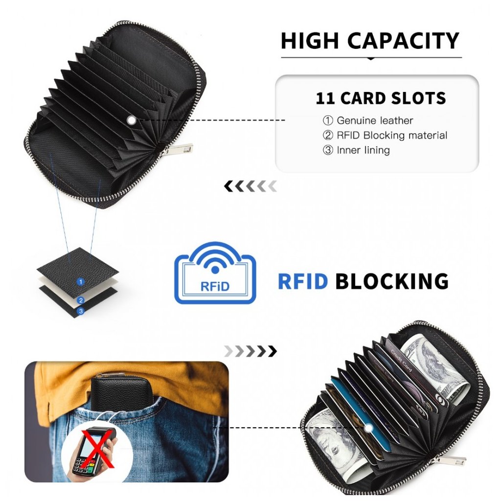 Tato peněženka na karty je navíc vybavena blokací RFID, která chrání vaše karty před neoprávněným skenováním. S váhou pouhých 0,13 kg je lehká a pohodlná na nošení. Pro ty, kteří preferují malá a praktická řešení pro své karty, je tato peněženka ideálním společníkem!