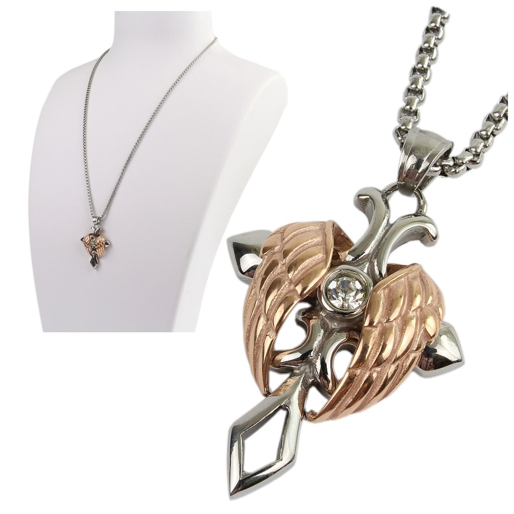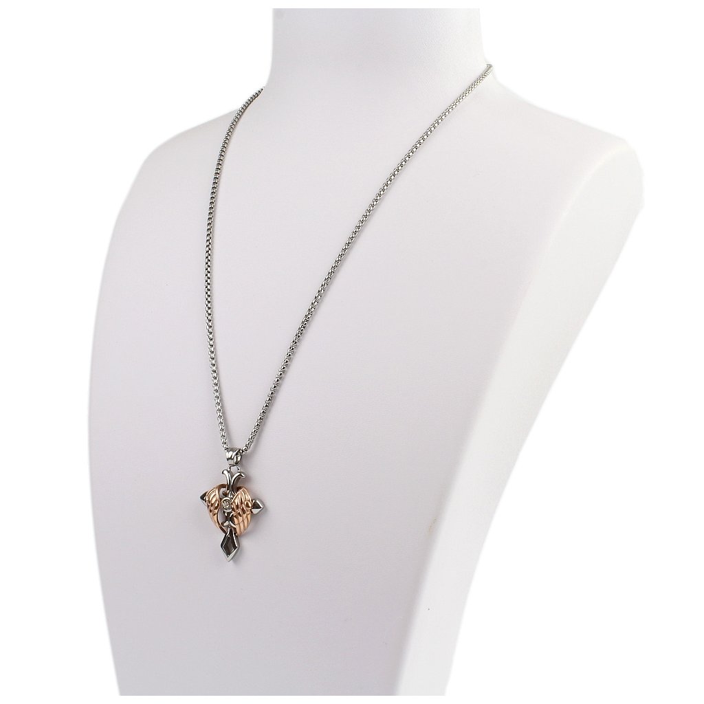 Vlastnosti a popis: Řetízek z titanové oceli s přívěskem kříž s křídly v měděné barvě