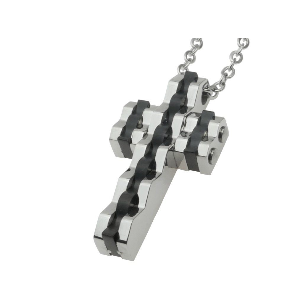 Řetízek s přívěskem kříž stříbrno černém provedení z oceli