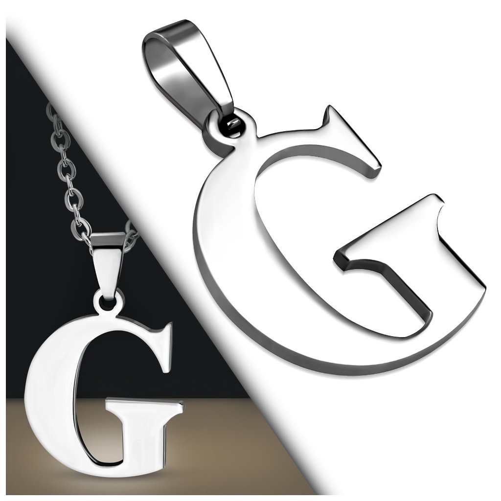 Řetízek z chirurgické oceli s přívěskem ve tvaru písmene "G" 2,5 cm stříbrné barvy