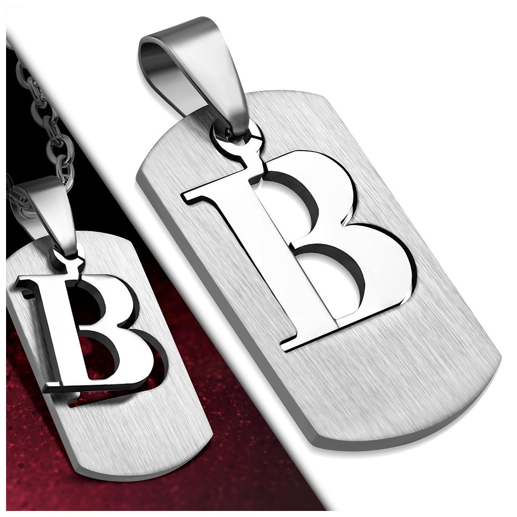 Řetízek z chirurgické oceli s přívěskem plotýnky s písmenem "B" 3 cm ve stříbrné barvě