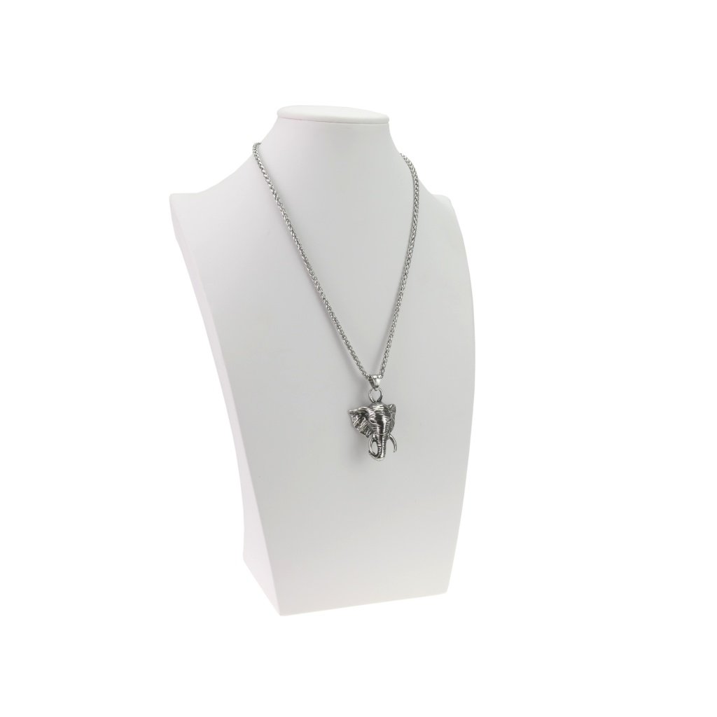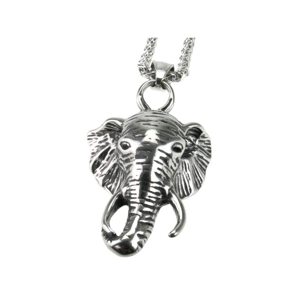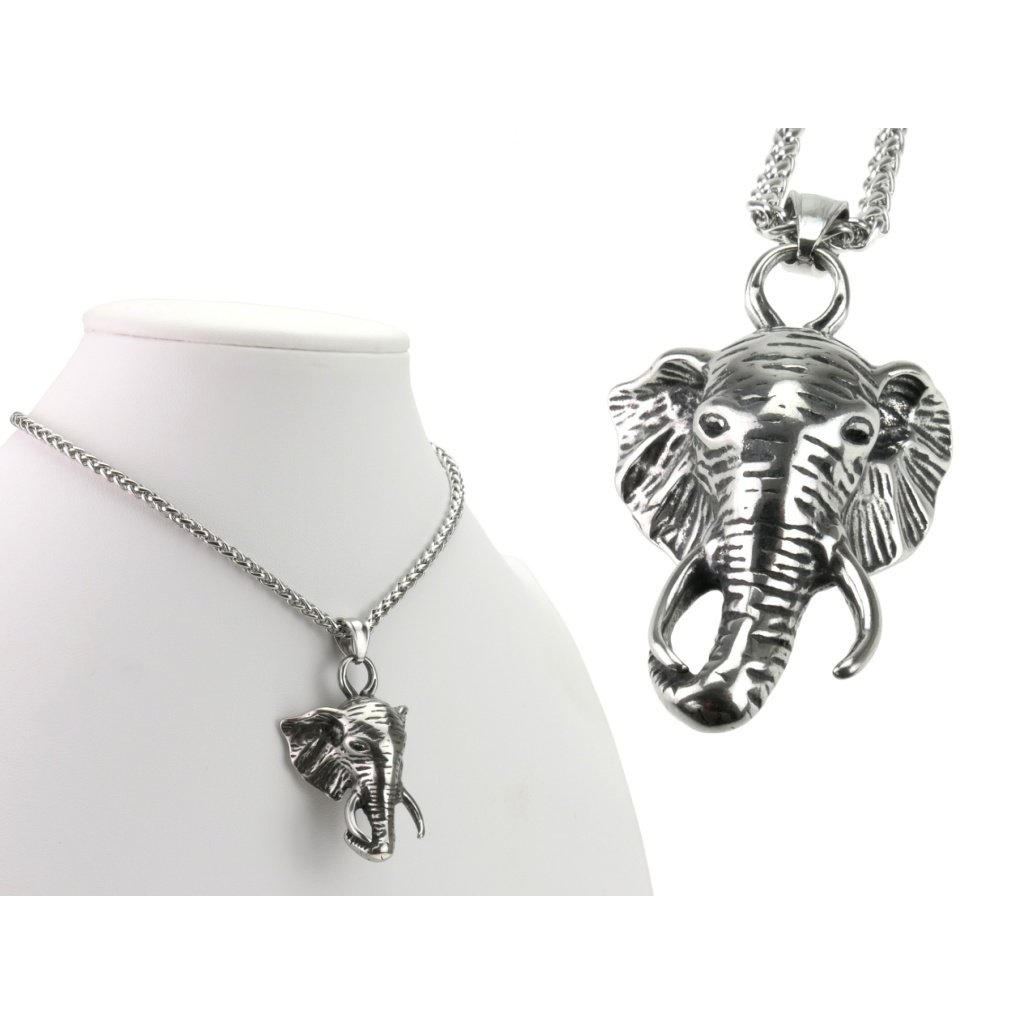 Krásný řetízek s přívěskem ve stříbrném provedení z chirurgické oceli. Přívěsek je ve tvaru hlavy slona, jehož výřezy jsou potaženy patinou. Přívěsek je poněkud větší, takže určitě neujde pozornosti. Slon jako symbol je odjakživa symbolem štěstí , ochrany a plodnosti. Tento šperk je vhodný jako dárek , který přinese svému nositeli štěstí. Řetízek i přívěsek jsou vyrobeny z kvalitní chirurgické oceli , která nekoroduje, nečerná a uchovává si svůj lesk. Je vhodná pro běžné každodenní nošení, protože je antialergická. U tohoto šperku si umíte vybrat délku řetízku pokud Vám nevyhovuje jeho základní délka.