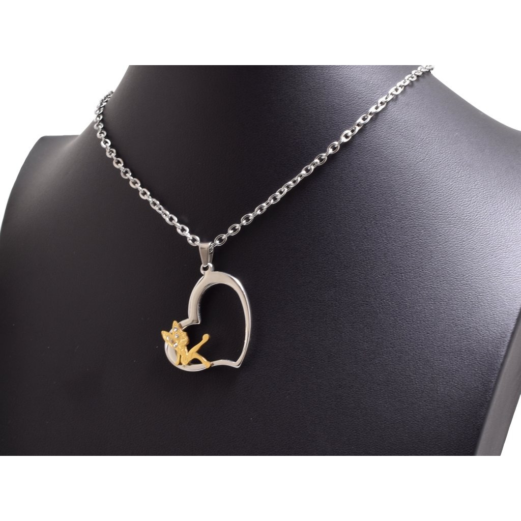 Dámský řetízek s přívěskem srdíčko s vílou zlaté barvy z chirurgické oceli