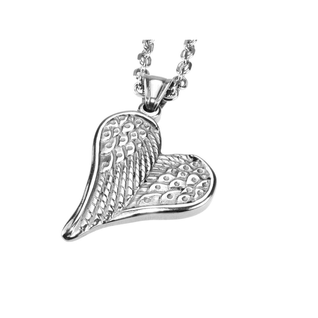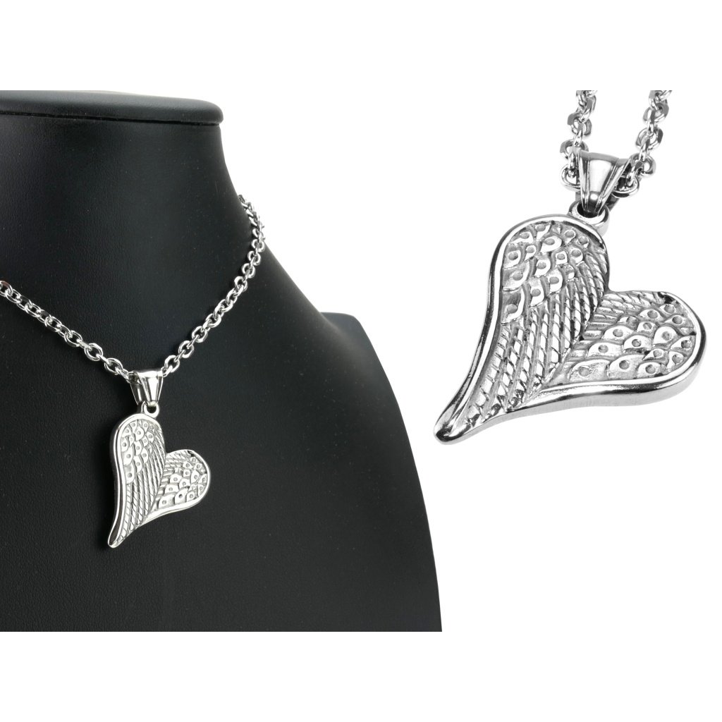 Dámský řetízek s přívěskem z chirurgické oceli andělská křídla ve tvaru srdce