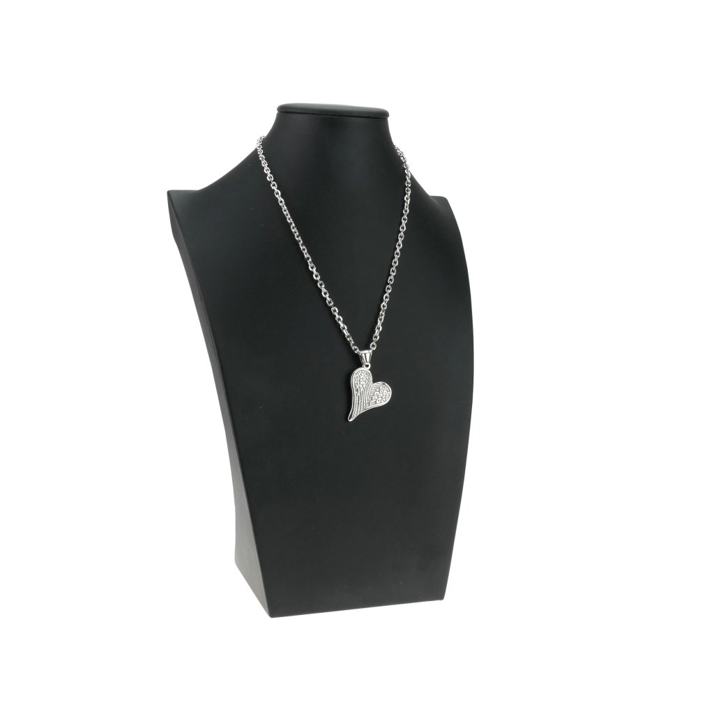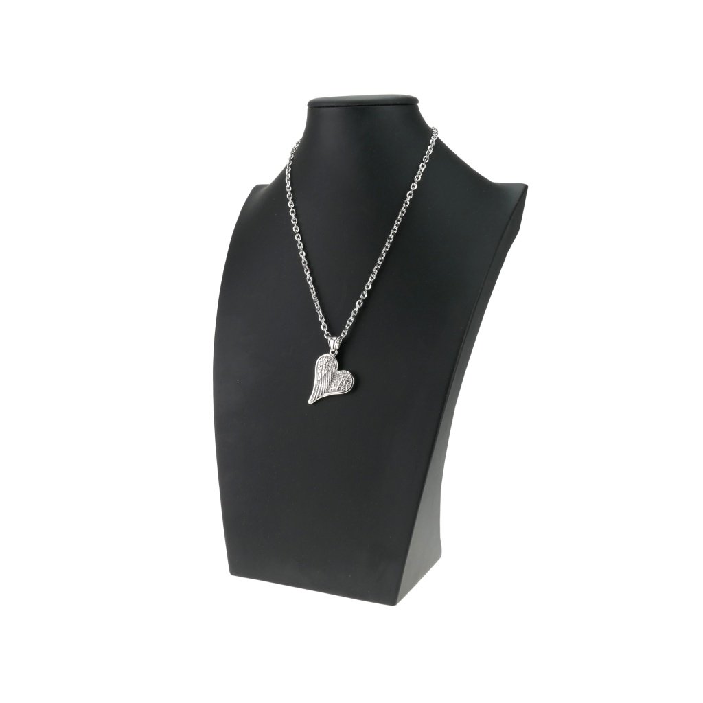 Řetízek s přívěskem stříbrná andělská křídla ve tvaru srdce z oceli + pri tomto produkte si môžete zvoliť dĺžku retiazky