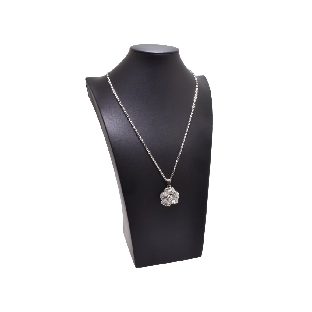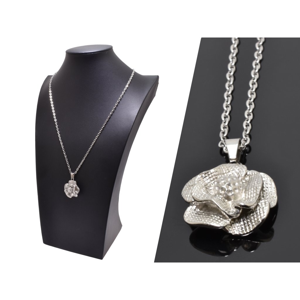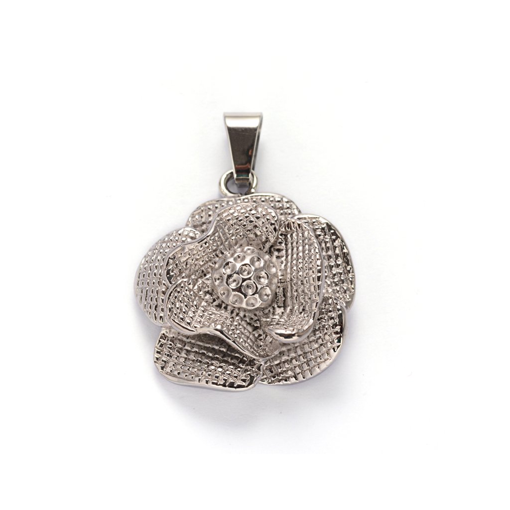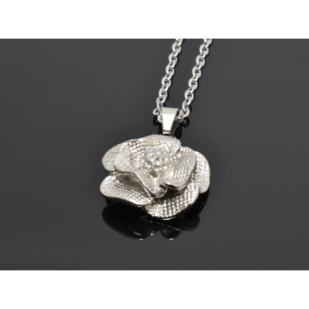 Stříbrný řetízek s přívěskem růže z chirurgické oceli - Silver blom