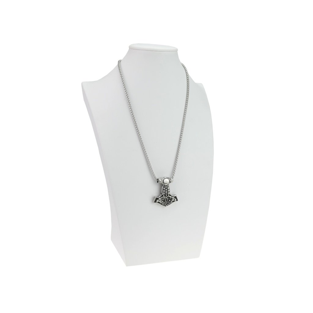Stylový pánský řetízek s přívěskem Thorovo kladivo z oceli. Thorovo kladivo je nordickým symbolem, který představuje upřímnost, věrnost, spolehlivost a samozřejmě sílu a moc. Patří severskému bohu Thorovi, který je znám svou silou právě díky svému kladivu. Přívěsek Thorovo kladivo má tvar obráceného písmeno T. Má tmavší podklad, který je zdoben dvěma kozorožci, a proto je vhodný i pro lidi narozené ve znamení kozorohů od 22.12. do 20.1. Řetízek s přívěskem jsou vyrobeny z chirurgické oceli . Tento materiál nepotřebuje speciální péči a je vhodný pro každodenní nošení, nezčerná a je antialergický. Tento šperk je vhodný také jako dárek pro pány nebo pro lidi ve znamení kozorožce.