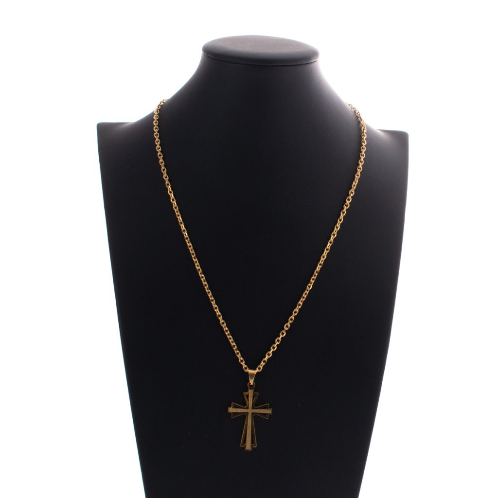 Řetízek s přívěskem z kříž z chirurgické oceli - zlatý + darčeková krabička zadarmo