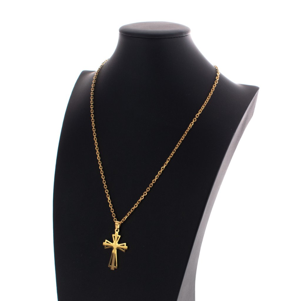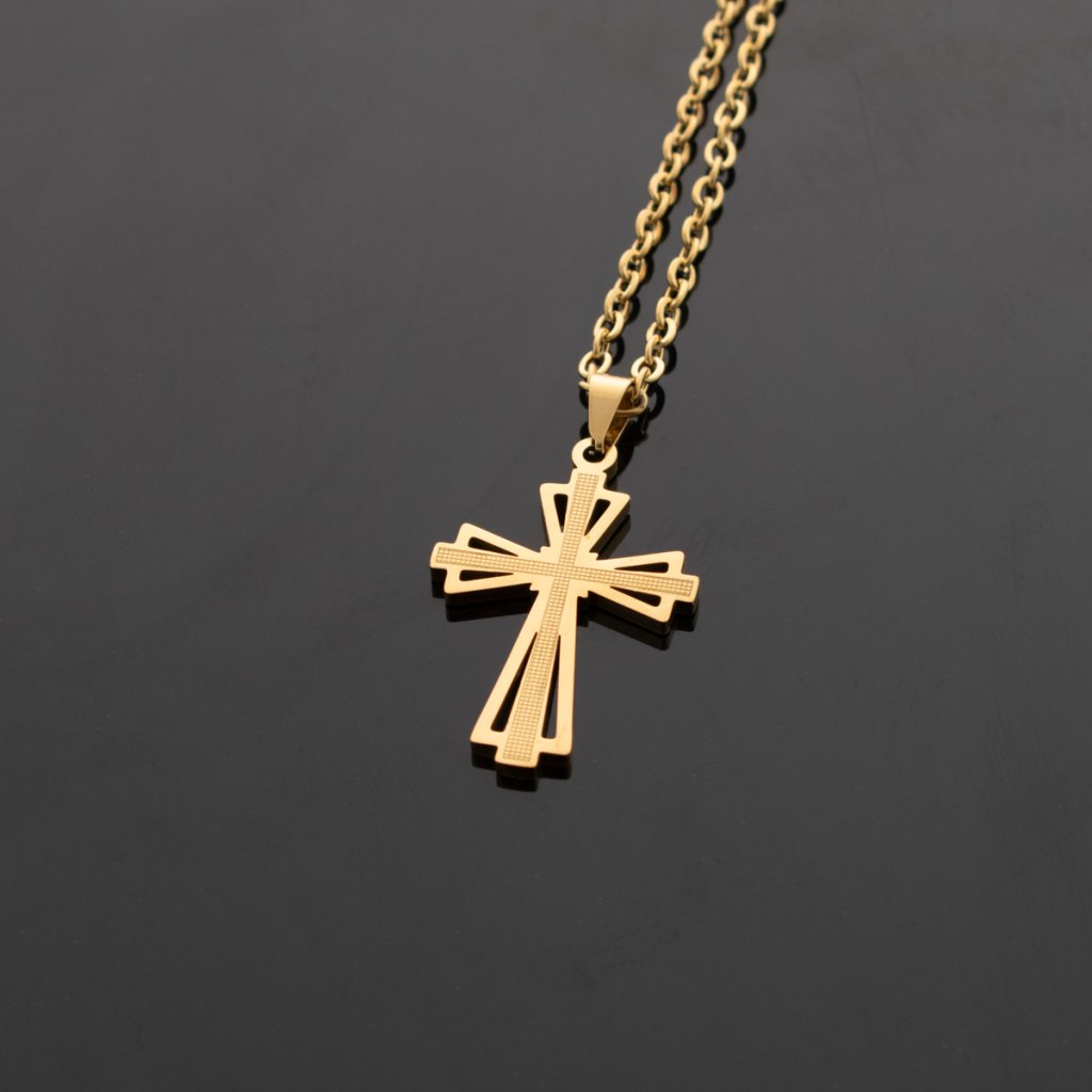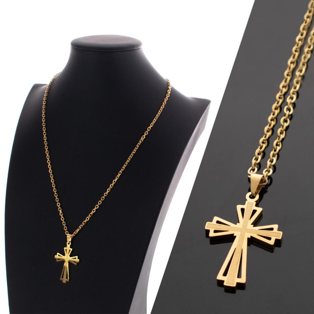 Zlatý řetízek s přívěskem kříž z chirurgické oceli