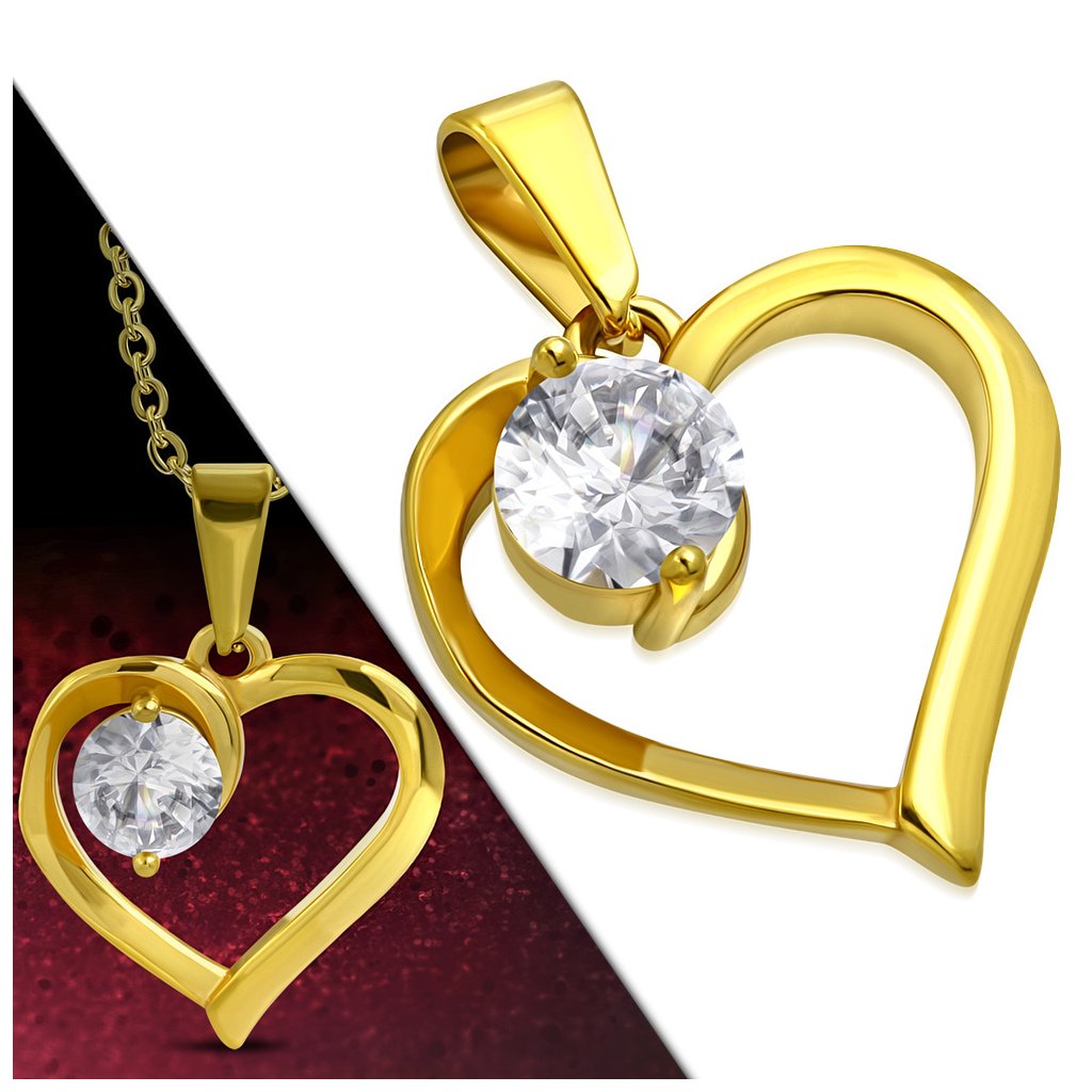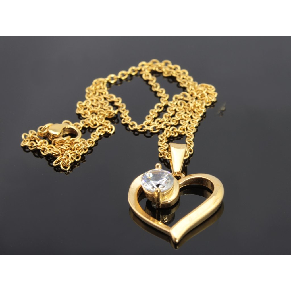 Vlastnosti a popis: Řetízek s přívěskem z chirurgické oceli zlaté srdce s očkem čiré barvy Sophie
