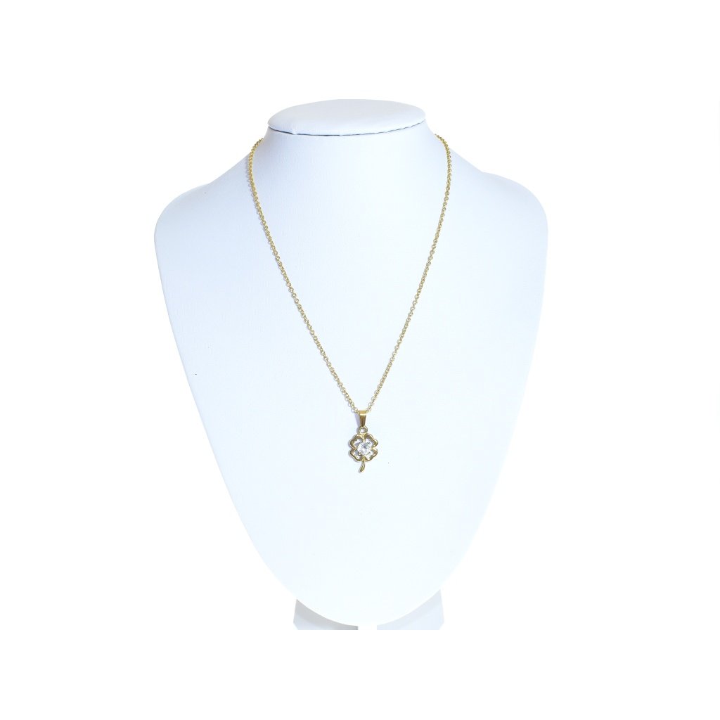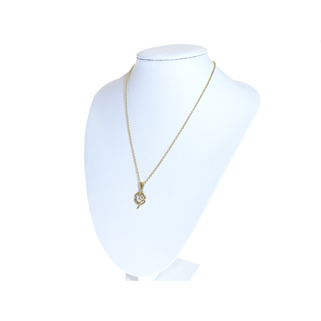 Romantický krásný dámský řetízek z chirurgické oceli s čirým očkem ve zlatém provedení. Čtyřlístek je od nepaměti symbolem štěstí a proto pokud nosíte tento šperk tak nosíte i svůj talisman štěstí. Šperk je vhodný pro všechny věkové kategorie a vhodný pro běžné nošení. Pokud Vám nevyhovuje základní délka řetízku 45 cm , můžete si vybrat délku dle Vašich potřeb.