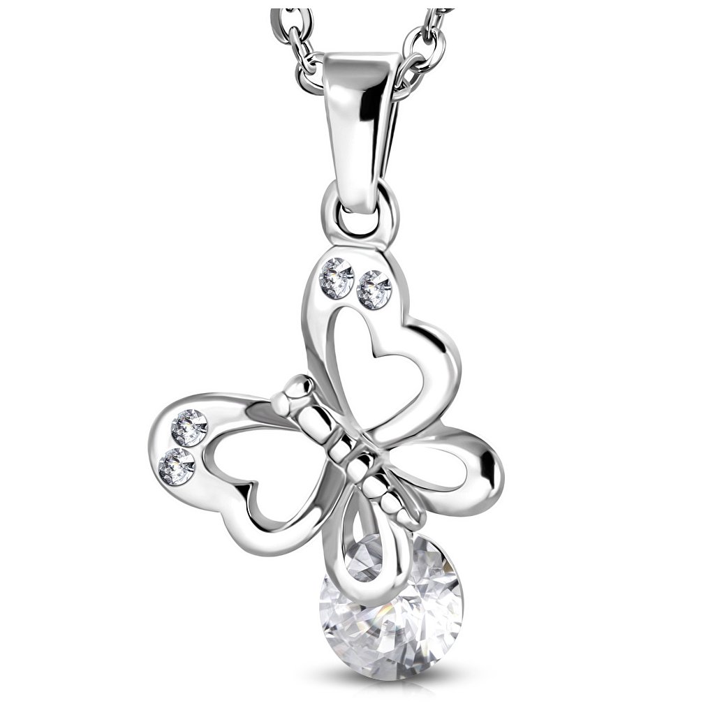 Řetízek s přívěskem ve tvaru motýla z chirurgické oceli