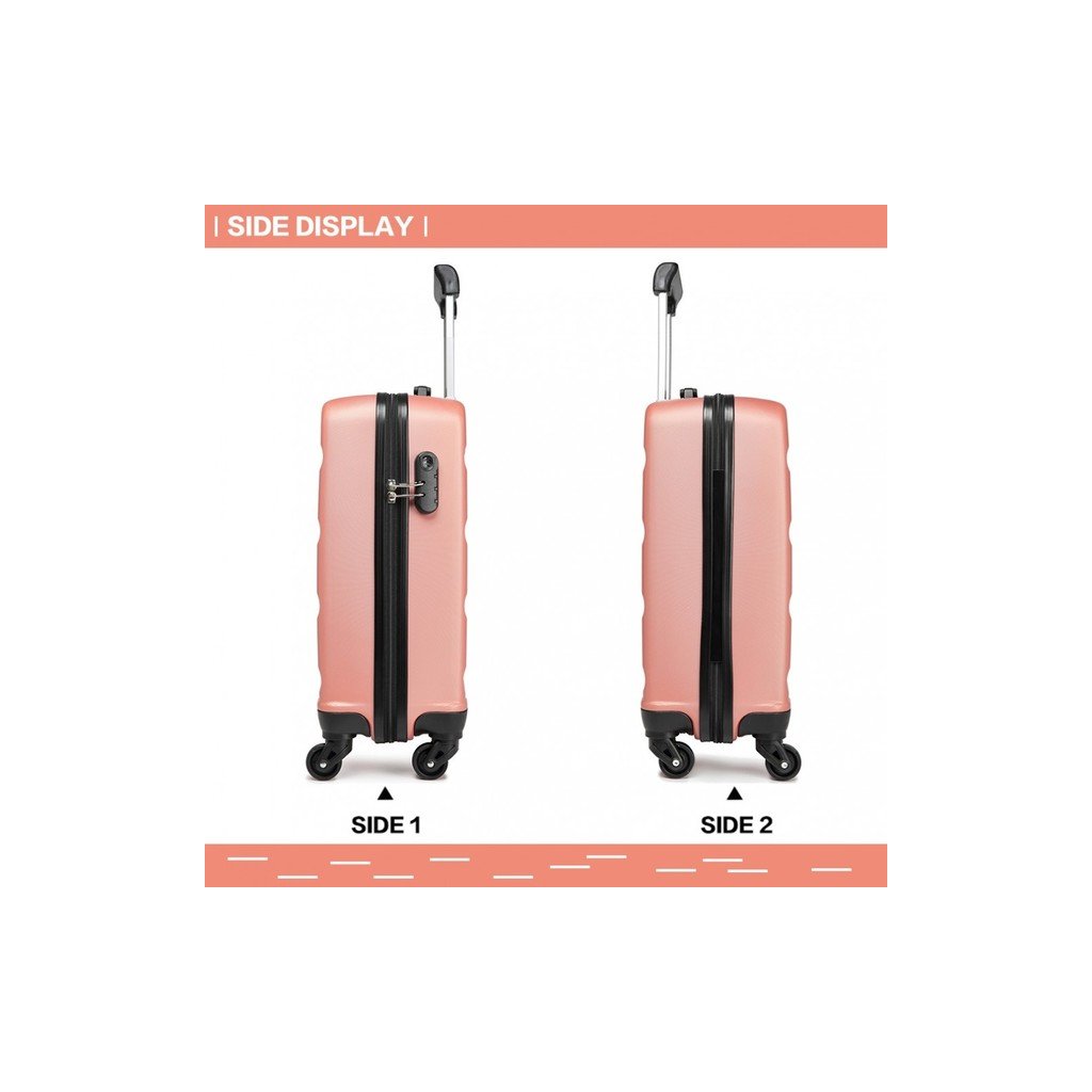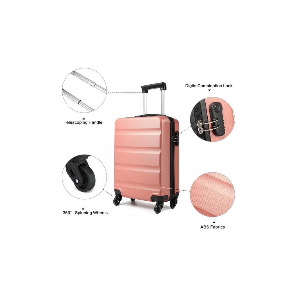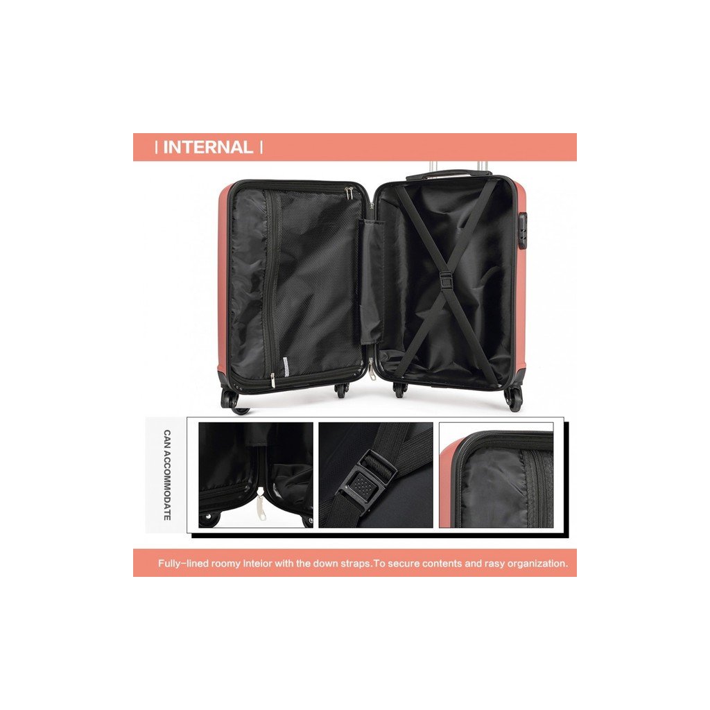 Kufry jsou z pevného ABS plastového materiálu, který je pevný a odolný vůči nárazům a poškození. S zavazadly se zachází prakticky a snadno díky teleskopické hliníkové rukojeti a 360 - stupňovým kolečkům. O bezpečnost vašeho zavazadla se opravdu nemusíte bát, nakolik kufry disponují se speciálním zámkem na kód. Vyztužené vnitřek je dokonale přizpůsobeno pro vaši zavazadla, kterou zajistíte gumovými pásky. Kosmetické drobnosti či jiné technologické věcičky lze vložit do zipového složce.